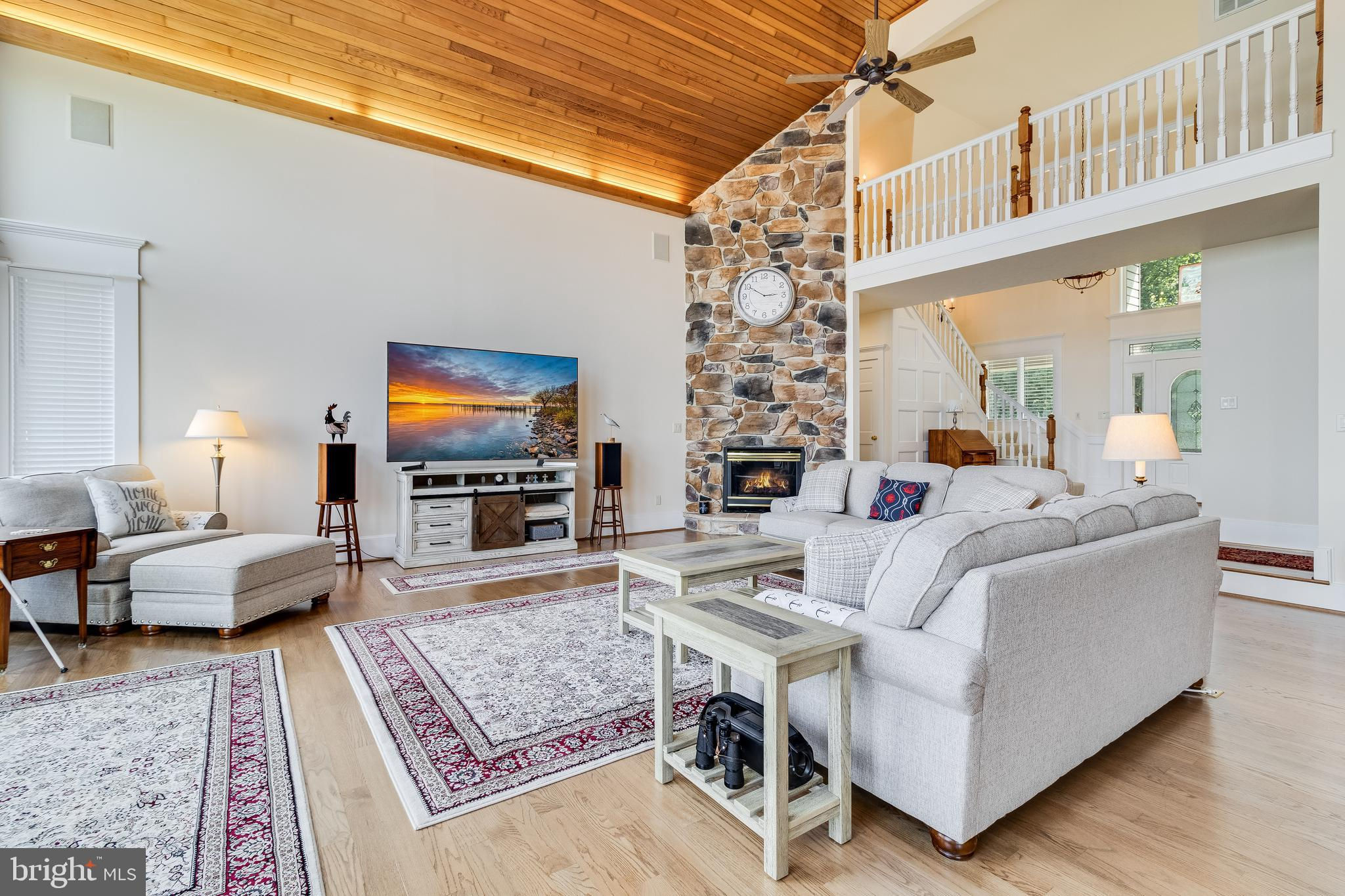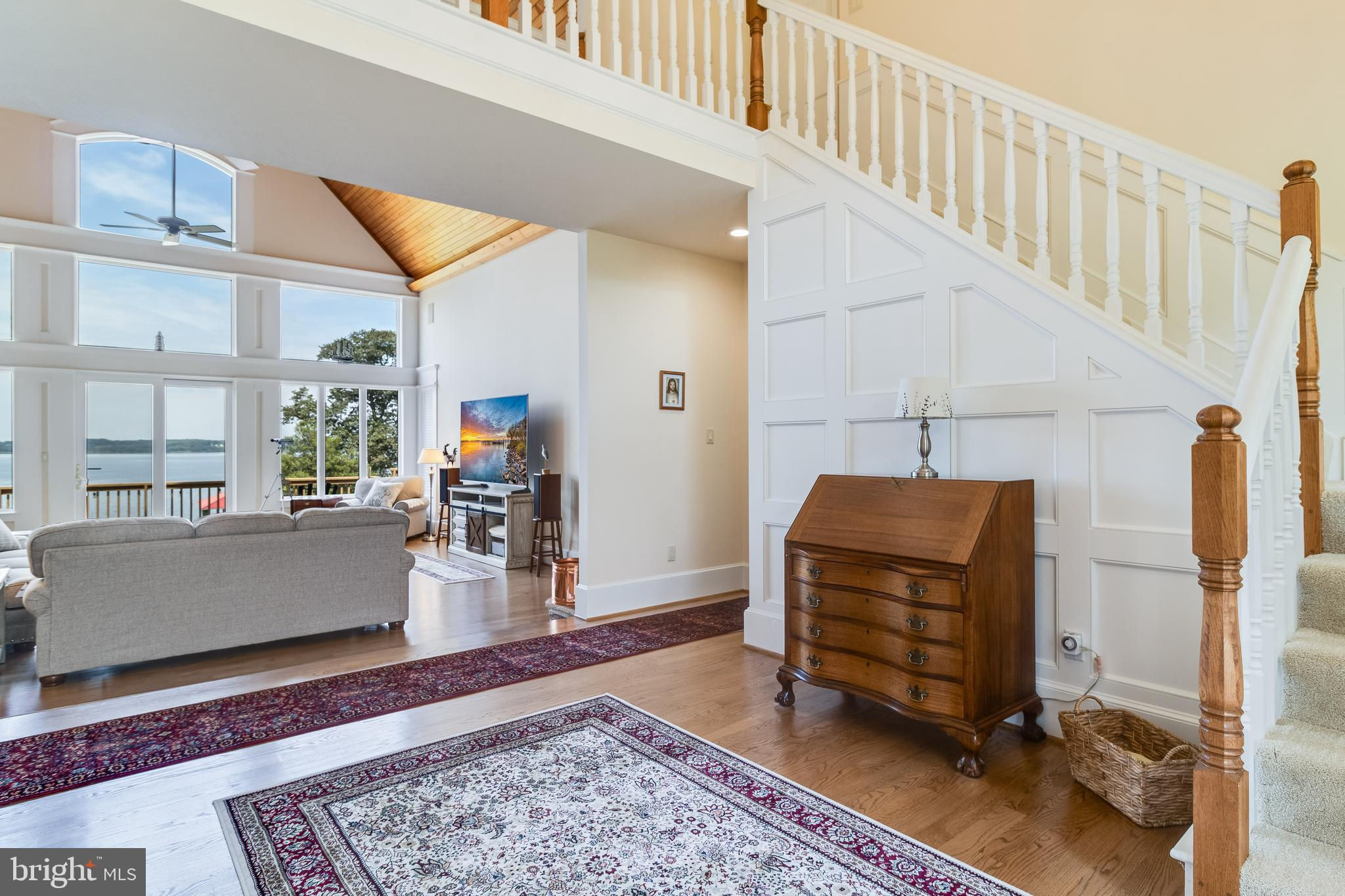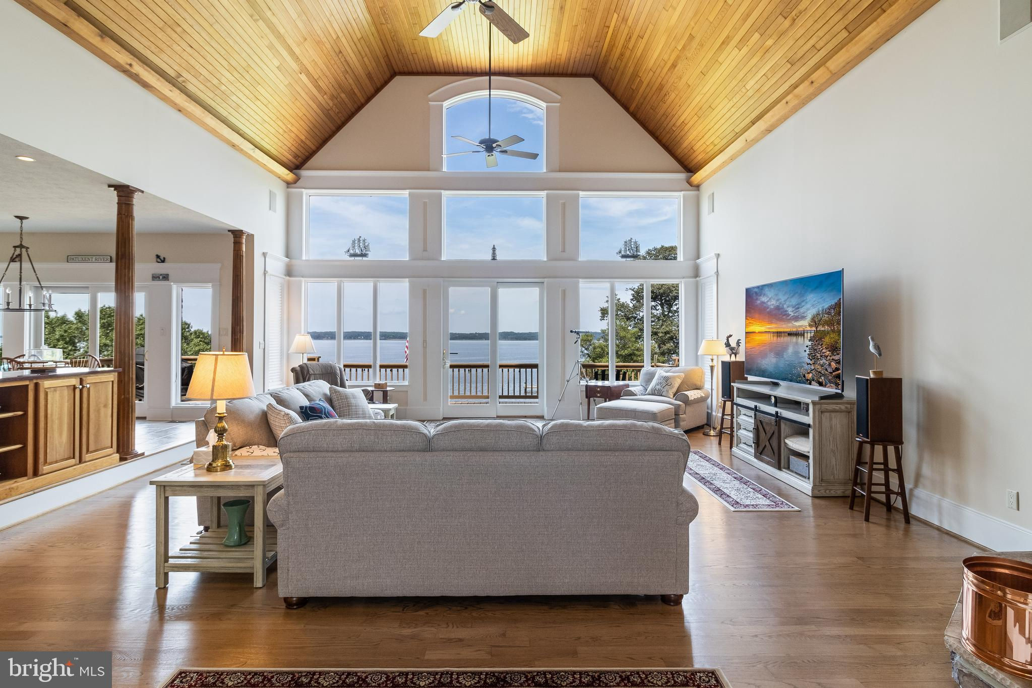**Nearly 6000 sq/ft Majestic Waterfront Home on the Patuxent River** Perched atop a stunning 1.5-acre lot with panoramic views of the Patuxent River, this luxury waterfront home epitomizes elegance and superior craftsmanship. The brick and stone exterior on all four sides and a durable 35-year roof with new 6-inch gutters and downspouts ensure longevity and low maintenance. The upgraded Andersen "Hurricane" windows and sliding doors, with a 20-year warranty, provide high wind force resistance and peace of mind. As you approach, the meticulously landscaped grounds and an oversized three-car sideload garage with 9-foot high doors The home has a three car oversized sideload garage which holds three cars comfortably and with the car lift would give you an additional space for a 4th car. The heated floors set the tone for the quality that awaits inside. Entering the home, the precision workmanship and attention to detail are immediately evident. The open floor plan features 9.5-foot ceilings on the first floor, except for the grand two-story foyer and sunken family room. This room, with wide plank oak flooring, a floor-to-ceiling stone gas fireplace, and a vaulted tongue-and-groove hardwood ceiling with perimeter uplighting and built-in surround sound, offers breathtaking views of the river through its expansive wall of glass. The dream kitchen is designed for both function and style, boasting custom staggered height cherry cabinets with crown molding, under-cabinet and over-cabinet lighting, African granite countertops, and ceramic backsplash with listellos and border accent tiles. Upgraded GE Profile stainless steel appliances, including a unique dual fuel range, make this kitchen perfect for culinary enthusiasts. The adjoining breakfast nook and formal dining area provide ample space for casual and formal dining. Adjacent to the kitchen is a well-appointed office with custom built-in shelving and cabinetry, complete with a custom scroll trim desk and wood shutter blinds. The laundry room/mudroom features upgraded appliances, built-in shelving, shoe and hat racks, cabinets, and a stationary tub, with a convenient half bath across the hall. The first-floor master suite is a sanctuary with large 2-piece crown detail, 8-inch base with cap, custom door trim with plinth blocks, and crown-detailed pediment headers. Wake up to stunning water views, and enjoy the luxurious master bath with wainscot walls, custom marble-topped vanities, heated floors, a corner jetted tub, and a large walk-in shower with a 6-head body spray system. Upstairs, two large bedrooms each have their own bathrooms with heated exhaust fans, built-in window seats, and large closets with access to off-season storage. The basement is a masterpiece, featuring a custom bar made from the stern of a historical 40-foot waterman’s boat, high ceilings, mounted TV, custom trimmed columns, built-in bookshelves, shiplap walls, and a stone accent rear wall. The basement also includes a full bath, a gym or potential fourth bedroom, a workroom, a mechanical room, and a large concrete-walled storage room that could serve as a panic room. The rear yard is an enchanting retreat, complete with custom landscaping and recreational spaces. The 240-foot pier with a metal-roofed boathouse and lift, equipped with electric and water, provides an ideal spot for boating and relaxation. This home is equipped with a boiler system for efficient heating, high-energy star heat pumps, wired for a whole-house generator, a radon mitigation system, and a comprehensive security system with cameras. Experience unparalleled luxury and waterfront living at its finest—this home is a true gem on the Patuxent River.