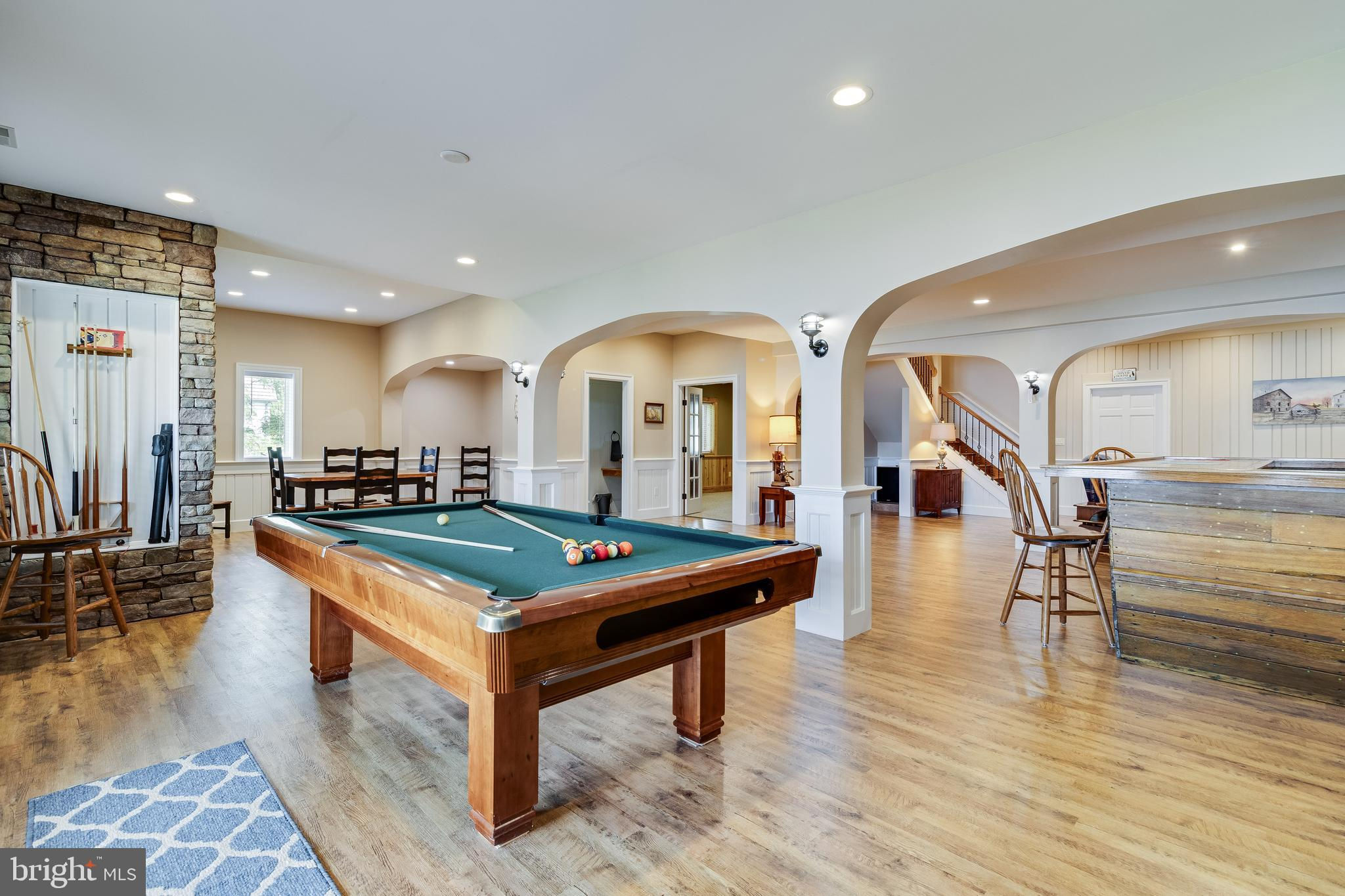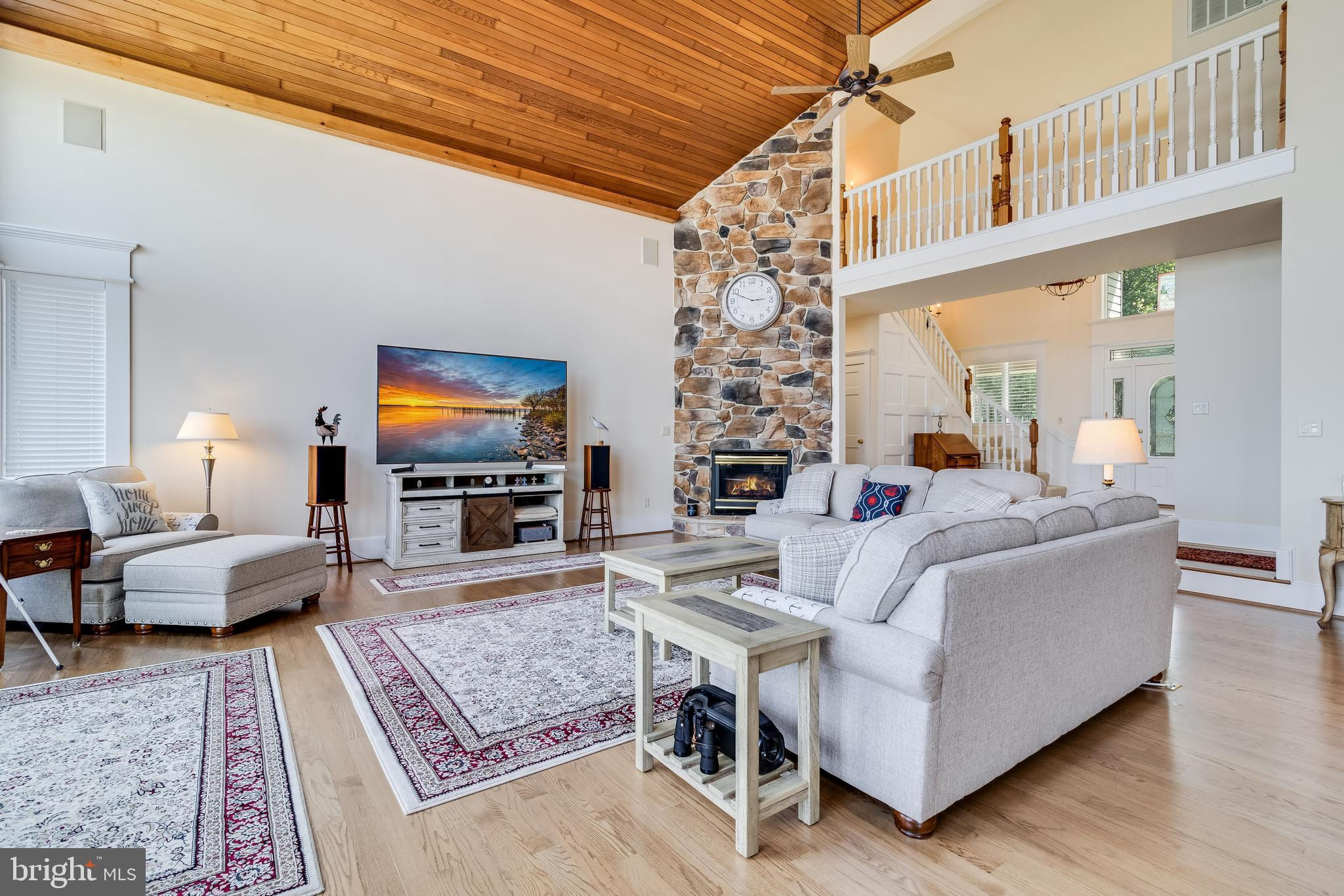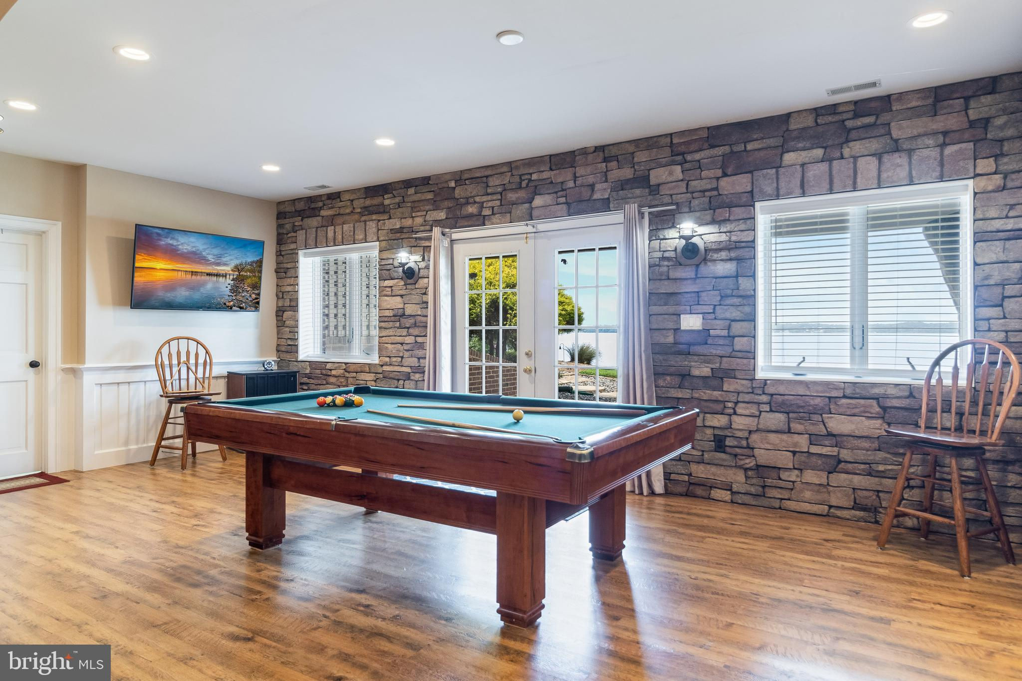 **Nearly 6000 sq/ft Majestic Waterfront Home on the Patuxent River** Perched atop a stunning 1.5-acre lot with panoramic views of the Patuxent River, this luxury waterfront home epitomizes elegance and superior craftsmanship. The brick and stone exterior on all four sides and a durable 35-year roof with new 6-inch gutters and downspouts ensure longevity and low maintenance. The upgraded Andersen "Hurricane" windows and sliding doors, with a 20-year warranty, provide high wind force resistance and peace of mind. As you approach, the meticulously landscaped grounds and an oversized three-car sideload garage with 9-foot high doors The home has a three car oversized sideload garage which holds three cars comfortably and with the car lift would give you an additional space for a 4th car. The heated floors set the tone for the quality that awaits inside. Entering the home, the precision workmanship and attention to detail are immediately evident. The open floor plan features 9.5-foot ceilings on the first floor, except for the grand two-story foyer and sunken family room. This room, with wide plank oak flooring, a floor-to-ceiling stone gas fireplace, and a vaulted tongue-and-groove hardwood ceiling with perimeter uplighting and built-in surround sound, offers breathtaking views of the river through its expansive wall of glass. The dream kitchen is designed for both function and style, boasting custom staggered height cherry cabinets with crown molding, under-cabinet and over-cabinet lighting, African granite countertops, and ceramic backsplash with listellos and border accent tiles. Upgraded GE Profile stainless steel appliances, including a unique dual fuel range, make this kitchen perfect for culinary enthusiasts. The adjoining breakfast nook and formal dining area provide ample space for casual and formal dining. Adjacent to the kitchen is a well-appointed office with custom built-in shelving and cabinetry, complete with a custom scroll trim desk and wood shutter blinds. The laundry room/mudroom features upgraded appliances, built-in shelving, shoe and hat racks, cabinets, and a stationary tub, with a convenient half bath across the hall. The first-floor master suite is a sanctuary with large 2-piece crown detail, 8-inch base with cap, custom door trim with plinth blocks, and crown-detailed pediment headers. Wake up to stunning water views, and enjoy the luxurious master bath with wainscot walls, custom marble-topped vanities, heated floors, a corner jetted tub, and a large walk-in shower with a 6-head body spray system. Upstairs, two large bedrooms each have their own bathrooms with heated exhaust fans, built-in window seats, and large closets with access to off-season storage. The basement is a masterpiece, featuring a custom bar made from the stern of a historical 40-foot waterman’s boat, high ceilings, mounted TV, custom trimmed columns, built-in bookshelves, shiplap walls, and a stone accent rear wall. The basement also includes a full bath, a gym or potential fourth bedroom, a workroom, a mechanical room, and a large concrete-walled storage room that could serve as a panic room. The rear yard is an enchanting retreat, complete with custom landscaping and recreational spaces. The 240-foot pier with a metal-roofed boathouse and lift, equipped with electric and water, provides an ideal spot for boating and relaxation. This home is equipped with a boiler system for efficient heating, high-energy star heat pumps, wired for a whole-house generator, a radon mitigation system, and a comprehensive security system with cameras. Experience unparalleled luxury and waterfront living at its finest—this home is a true gem on the Patuxent River.