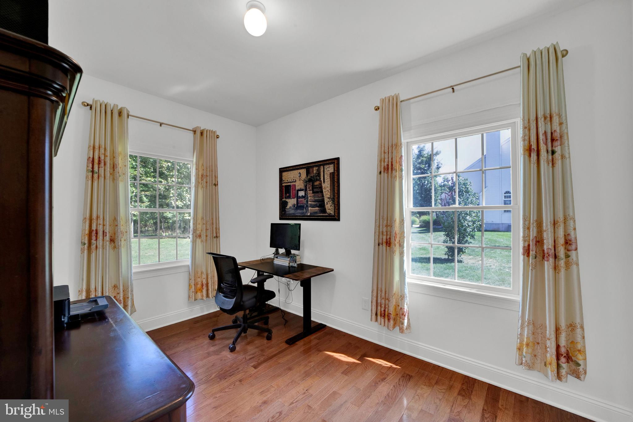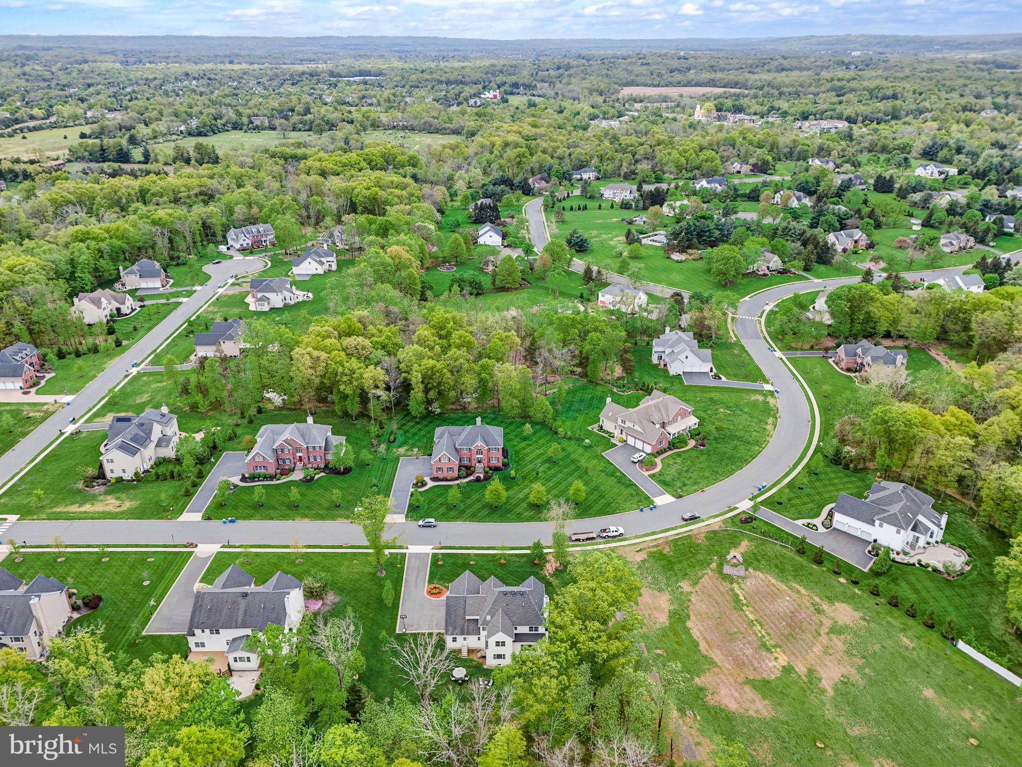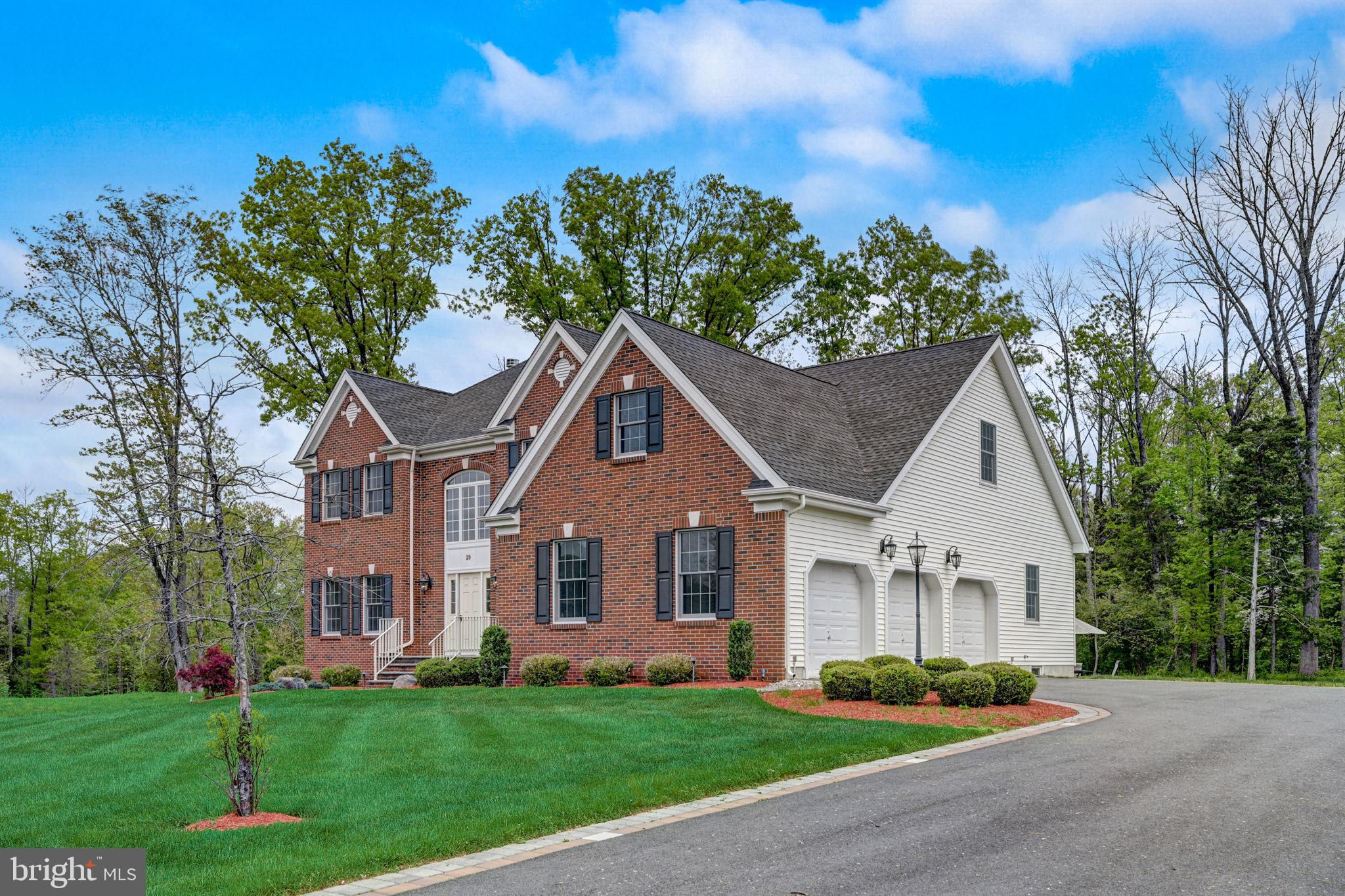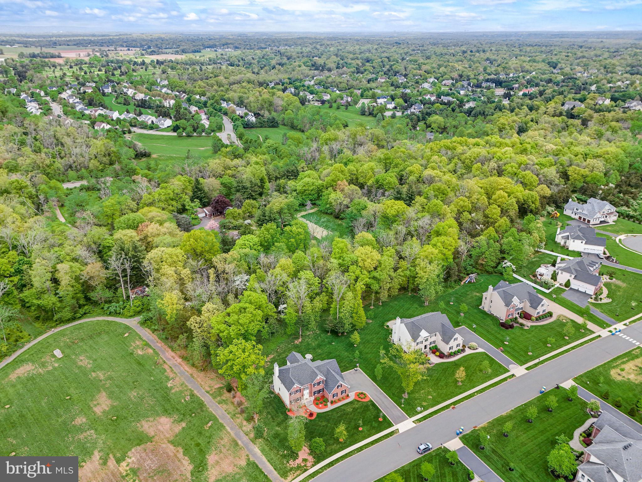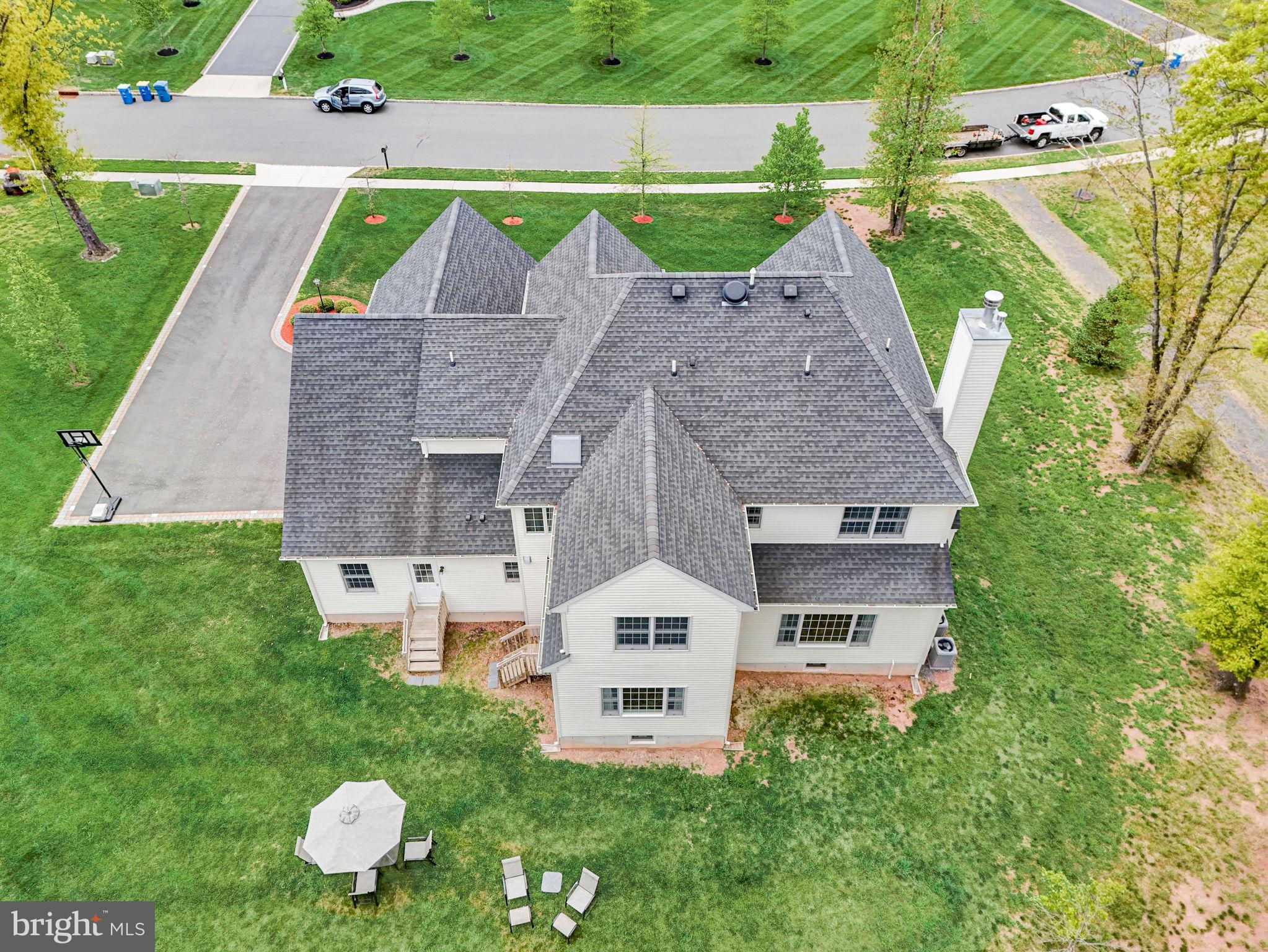 Beautifully Appointed Home with Highly Acclaimed Montgomery Twp Schools! Situated on a quiet street that ends in a cul de sac, 29 Twin Brook Drive enjoys a wonderful location backing to woods and beside a retention basin, affording the home a good deal of privacy. The stately brick facade is nicely accented by the inlaid brick driveway which leads to the thee-car side entry garage, and a paver brick walkway leading to the front door. Enter this nearly-new home (built in 2017) to a roomy and gracious two-story foyer. Hardwood floors and neutral tones carry throughout the main level, creating cohesion in the open floor plan from room to room. The formal living room and dining room flank the foyer. The living room opens to the family room, while the dining room opens to the kitchen, providing seamless flow throughout the main level, ideal for entertaining. A fireplace between two arch-top windows overlooking the open space beside the home provides a lovely focal point to the family room. A knee wall strikes just the right balance between open concept and definition between family room and kitchen. The chef’s kitchen has a center island with seating and storage, granite countertops, upgraded stainless steel appliances and a separate breakfast room in a sunny corner with windows and sliding glass doors providing views and access to the backyard. A main floor study is near a full bath, creating the option to serve as an office, guest suite or fifth bedroom. The mud / laundry room with utility sink completes the main level. The second level hosts the spacious primary suite, a second en suite bedroom with its own bath, and two additional bedrooms that share a hall bath. The primary bedroom has a tray ceiling, two walk-in closets and a sitting room that could be used for an additional office space, a nursery, or exercise room. The unfinished basement has high ceilings. Enjoy the convenience of public utilities.