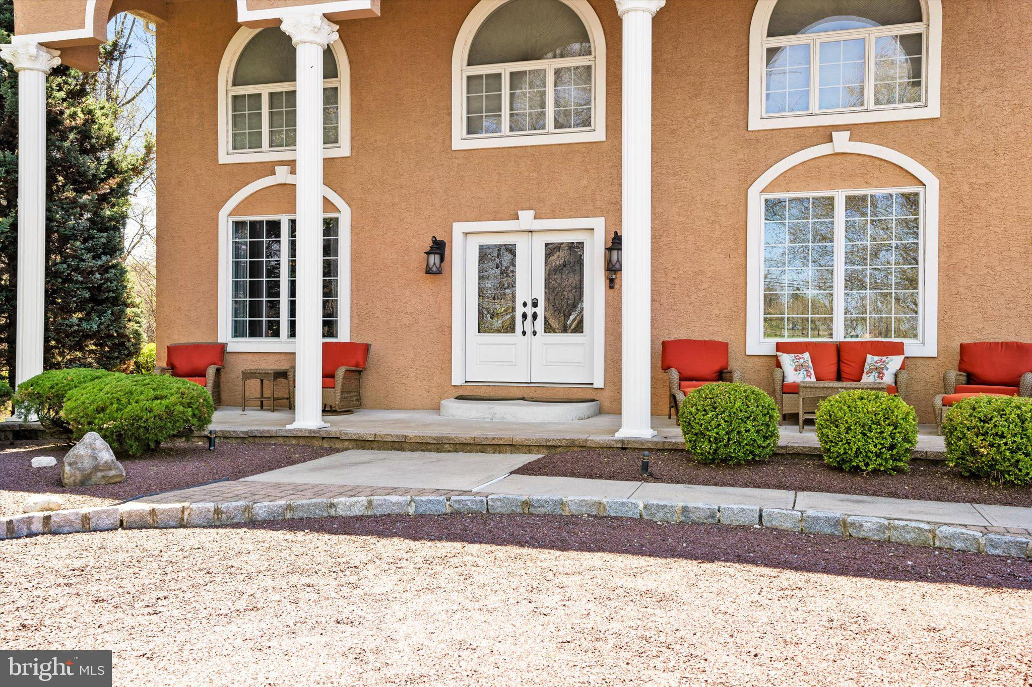 Unbelievable value for the square footage! A true custom villa set back on almost 3 acres! Built by the owner with absolutely no expenses spared during construction! This 6 bedroom, 5.5 bathroom home boasts a full first-floor in-law suite and totals over 6,000 square feet of finished space! Expansive courtyard driveway centered by an ornate fountain in front of large rocking chairs on the front porch adorned with palatial columns and beautiful stucco. Enter into the two-story living room w/ ceramic tile flooring, custom window treatments and a picturesque custom mural. To your left, a spacious office w/ hardwood flooring. Adjacent to the living room is an elegant formal dining room w/ chandelier and custom medallion. Large eat-in kitchen w/ 42in cabinetry, updated stainless steel appliances, center island w/ built-in wine refrigerator and a walk-in pantry. Beyond the kitchen, a two-story family room w/ gas fireplace. Upstairs, you will find 4 generous bedrooms. Fit for a king & queen, the primary suite has an in-suite bathroom w/ soaking tub, a stall shower & double vanity, two walk-in closets and access to the sprawling private balcony that overlooks the courtyard. Three additional bedrooms and another full bathroom complete the upper level. Main floor laundry room w/ sink, intercom & surround sound systems throughout, oversized two-car garage w/ workshop space that leads into a mudroom. Fully finished walk-out basement w/ a wet bar, recreation/game room, entertainment hub, wine cellar, workout room, full bathroom and plenty of space to host large gatherings & celebrations! The in-law suite has its own separate entrance and boasts 2 bedrooms, 2 full bathrooms, a gourmet kitchen w/ 42in cabinetry, granite countertops, large center island. Spacious dining and living rooms, a laundry room AND its own private garage! The fully-fenced in backyard connects both the main residence and the in-law suite via an expansive paver patio flanked by two custom grills, one on each end, and a built-in fire pit that sits in front of an outdoor TV setup. Across the street from Robbinsville Community Park, enjoy the fireworks from your front lawn or balcony! Premier location near shopping, grocery and award winning dining. Just minutes from the world renowned BAPS Swaminarayan Akshardham temple. Plus, quick access to major corridors such as Route 130, I-95, I-195, the New Jersey Turnpike and only 10 minutes from the Hamilton Train Station. The opportunity to see a home like this doesn’t come often!