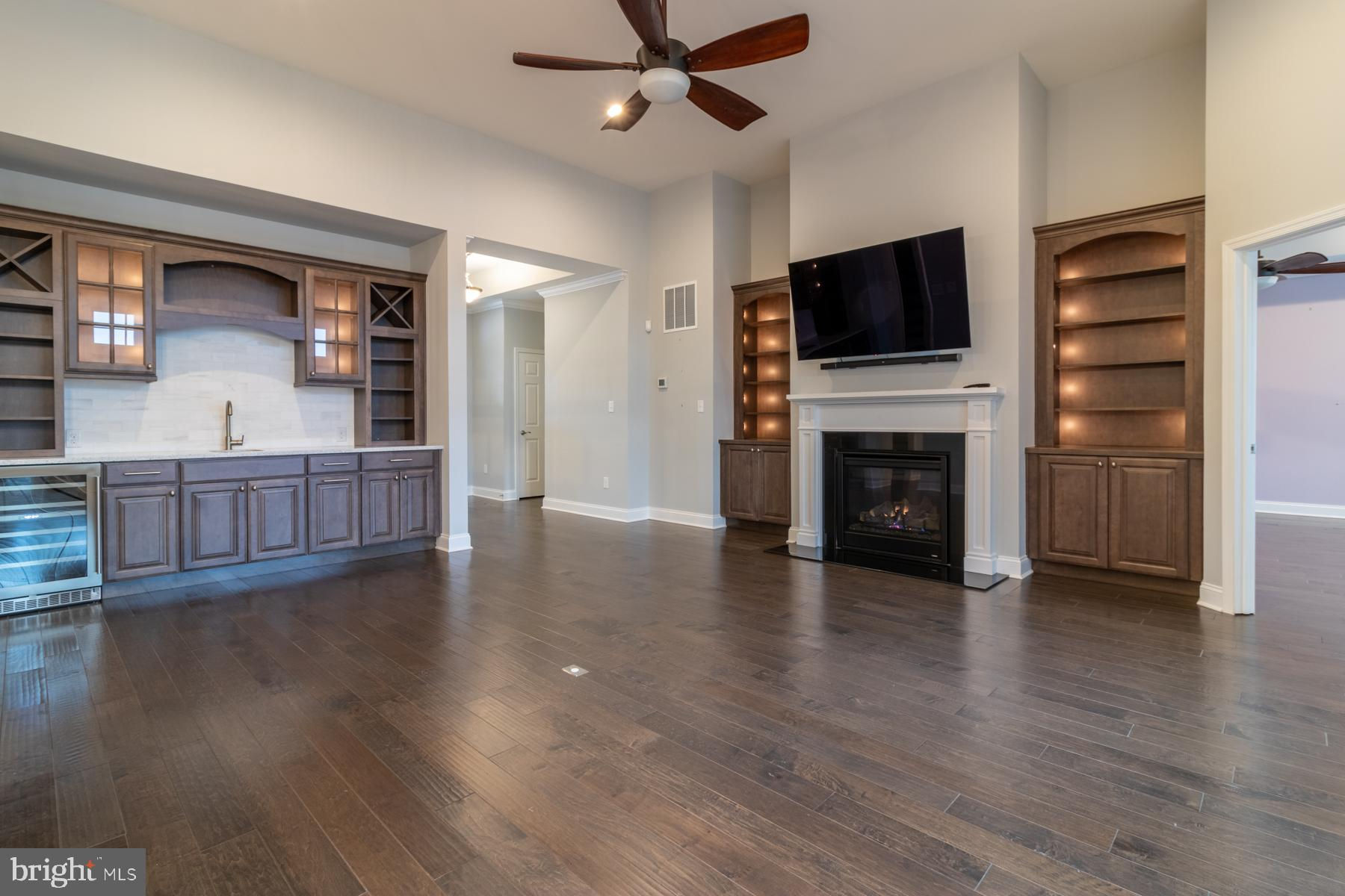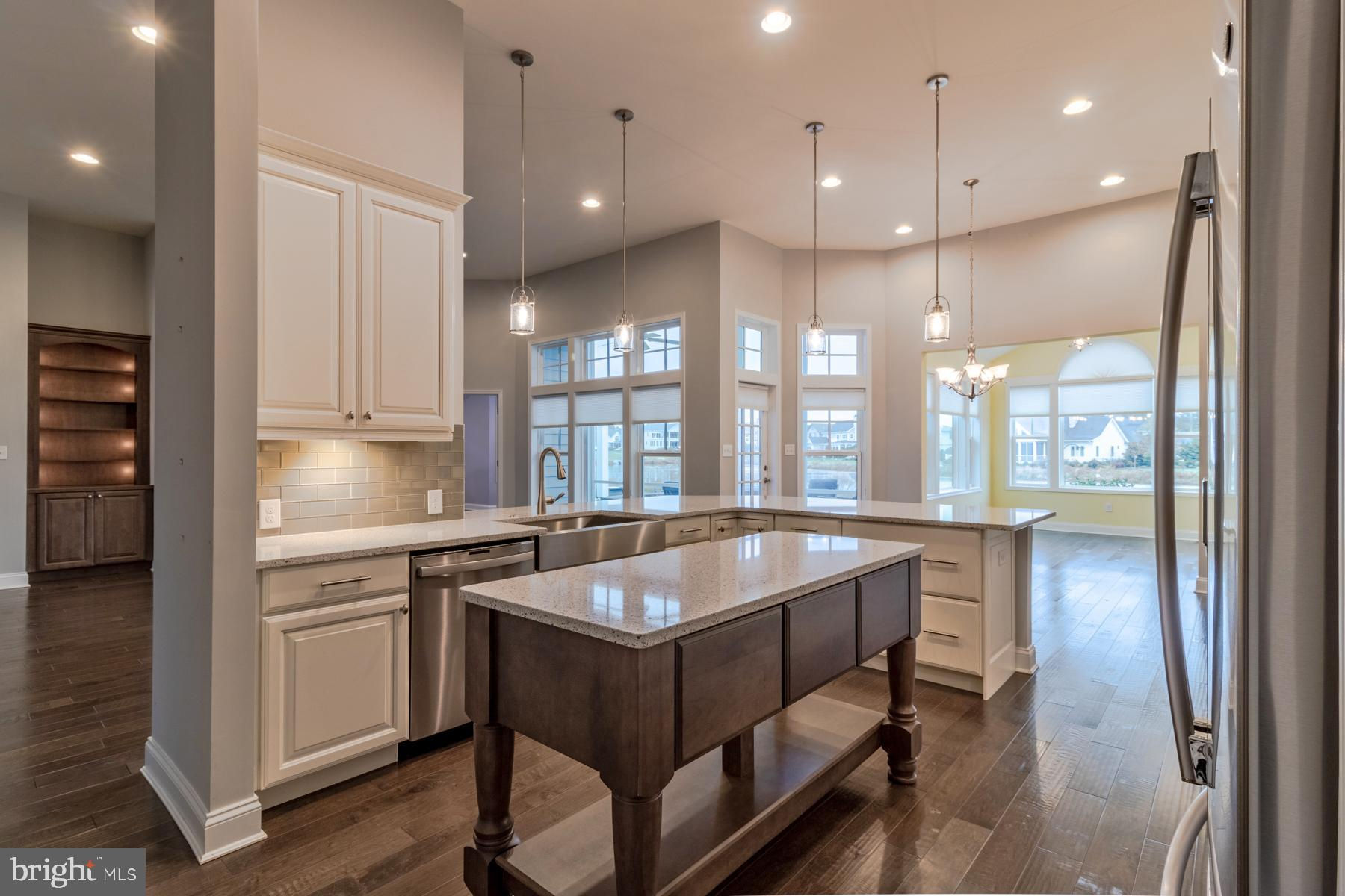 Discover the essence of coastal living in this beautifully crafted Herring Point model by Schell Brothers, ideally situated on a premium pond front homesite in the highly sought-after community of Showfield. Blending refined design with relaxed coastal charm, this residence offers 4 bedrooms, 3.5 baths, and an inviting layout perfectly suited for both everyday comfort and effortless entertaining. Step inside to a bright, open floor plan accented by large windows that frame serene pond views and flood the great room with natural light. The living area features a gas fireplace, custom built-ins, a wet bar with custom shelving, and wide-plank hardwood flooring that flows seamlessly throughout the main level. The gourmet kitchen is a showpiece, boasting an oversized quartz island, stainless steel appliances, five-burner gas cooktop, farm sink, custom cabinetry, tile backsplash, and a walk-in pantry. Adjacent spaces include a sun-filled morning room, perfect for casual dining or relaxation, and an expansive two-tiered paver patio designed for al fresco gatherings. The luxurious first-floor owner’s suite is a private retreat featuring a tray ceiling, walk-in closets, and a spa-inspired bath with dual vanities, an oversized glass shower, makeup vanity, and designer tile selections. Two additional main-level bedrooms and a versatile front office or flex room offer comfort and flexibility for guests or remote work. Upstairs, an open loft area provides additional space for a media/hobby room, bedroom, or guest quarters with a full bathroom. Enjoy outdoor living at its finest with a screened porch, expansive patio with built-in grill, and breathtaking pond views that capture stunning sunrise views. Additional highlights include solar panels for energy efficiency, oversized garage with epoxy flooring, fiber cement siding, plantation shutters, tankless Rinnai water heater, irrigation well and Guardian security system. Schell Brothers is celebrated for its superior craftsmanship, structural innovation, and energy-efficient design—and this home is a perfect reflection of that standard. Residents of Showfield enjoy premier amenities including a clubhouse with fitness center and outdoor pool, wooded walking trails, lighted sidewalks, and four scenic ponds. Located less than one mile from Lewes Beach, historic downtown Lewes, and Cape Henlopen State Park, this exceptional property offers the ultimate in coastal Delaware living. Contact the listing agent for a detailed feature list and floor plan, and schedule your private showing today!