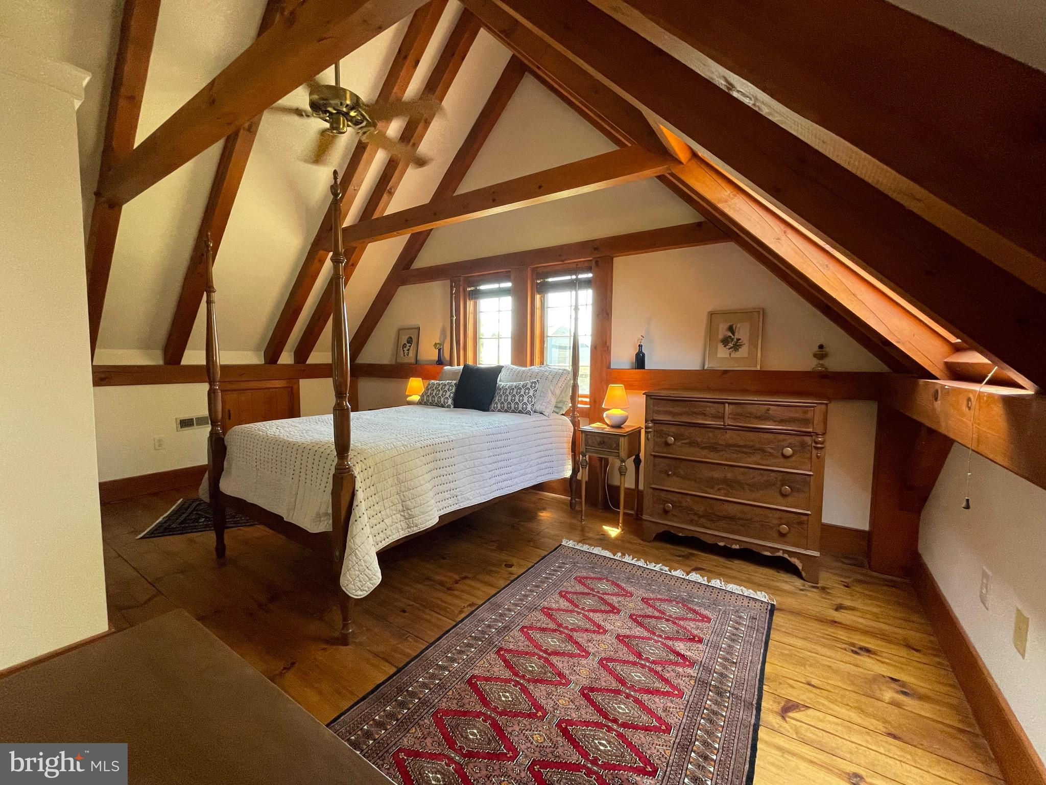 Apple Ridge Farm is in a spectacular park-like setting. It offers beautiful open mountain views, a private pond complete with a windmill and dock, a well-crafted Sawmill River Post & Beam house, and a small historic log cabin overlooking a stream to inspire creative minds. There are fenced pastures, a 2-story barn with electricity and concrete floors, an oversized 2-car garage, and a 3-bay Morton tractor barn. The spacious timber-frame contemporary has super insulated weather-tight shell construction, large wood beams, high-ceilings, Anderson windows, hardwood floors, skylights, a two and a half-story fireplace, and an all-season sunroom. This first-time offered property is located within 2 miles of Flint Hill and close to the quaint Town of Washington. Near wonderful eateries, wineries/breweries, art galleries, beautiful Skyline Drive, and the Shenandoah National Park for your enjoyment. Whether you choose to farm, ride horses, garden, or just relax and enjoy the sweet Rappahannock County life, this glorious home and property will welcome you and your guests.