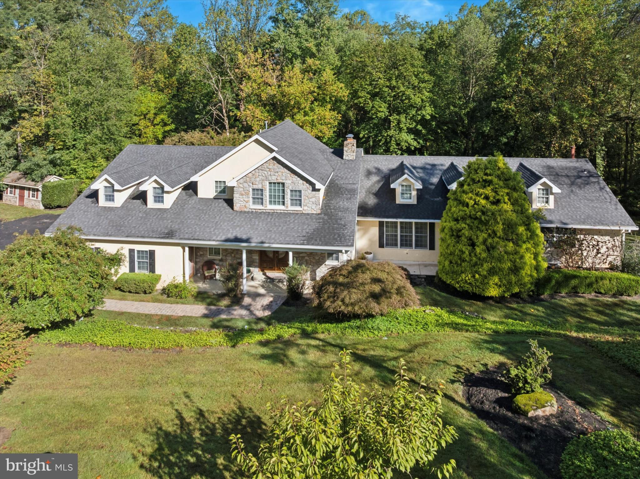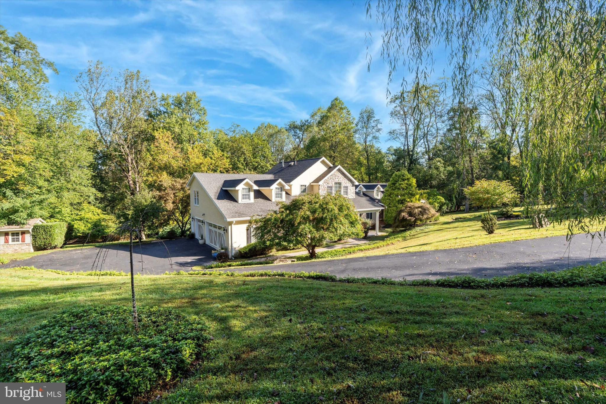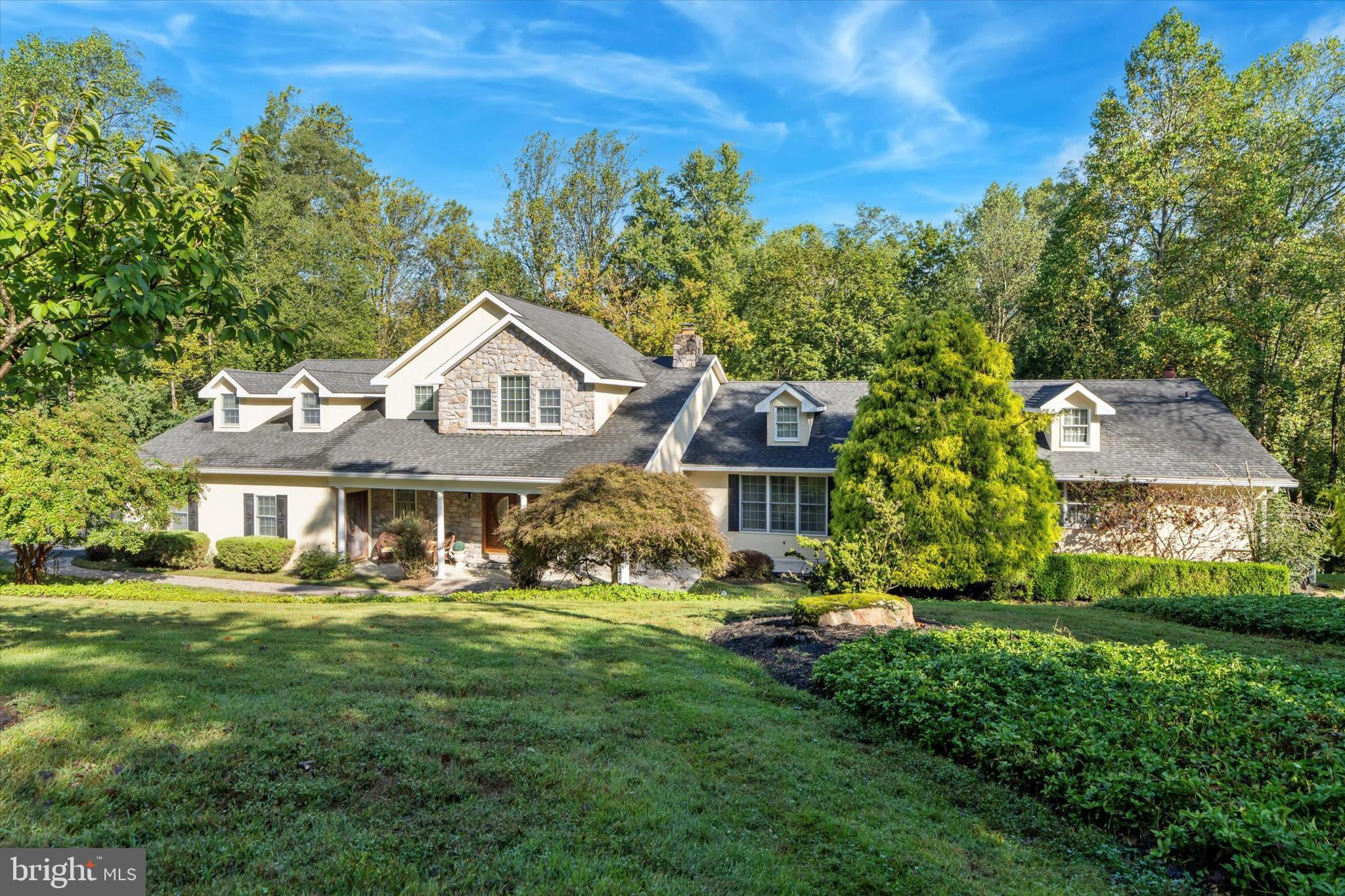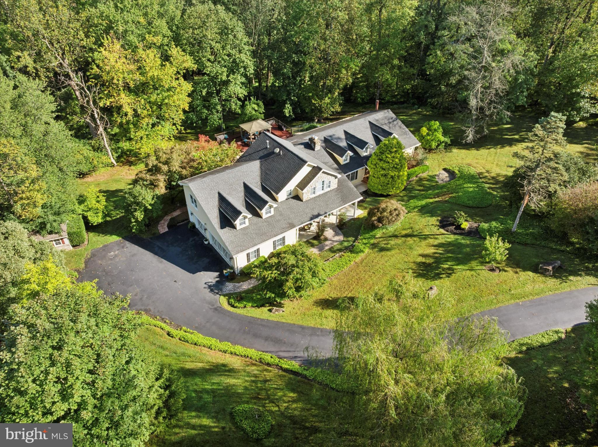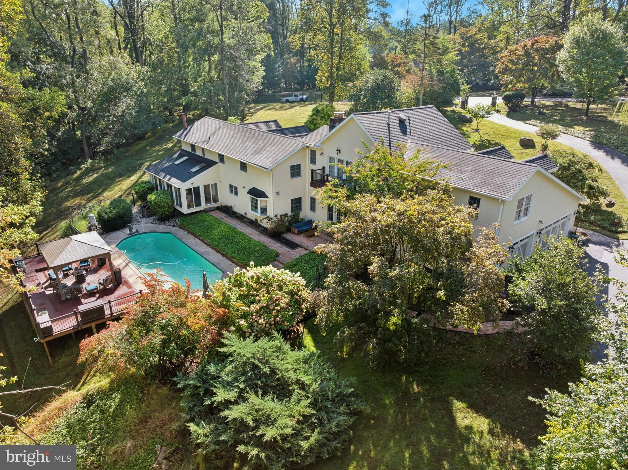 Welcome to 530 Woodhaven Road — an exceptional single-family residence nestled on a picturesque two-acre lot in Thornbury Township, within the award-winning West Chester Area School District. Tucked behind a gated entrance and surrounded by mature trees, this property offers the perfect balance of luxury, privacy, and tranquility. Step inside to a welcoming foyer that opens to a stunning two-story great room featuring a gas fireplace, recessed lighting, and expansive windows that bathe the home in natural light. To the right, the formal living room showcases a beautiful stone wood-burning fireplace, creating a warm and inviting atmosphere. The kitchen is the heart of the home—thoughtfully designed for both everyday living and entertaining. It features hardwood flooring, recessed lighting, a large center island, pantry, built-in desk area, and an additional prep island adjoining the family room. The family room, open to the kitchen, offers a spacious and comfortable gathering area with sliding doors that lead to a bright sunroom featuring vaulted ceilings, skylights, hardwood floors, and a cozy gas fireplace. Just beyond, the dining room overlooks the pool through a charming bay window, providing a picturesque setting for both everyday meals and special occasions.The main level also includes a bedroom with an en-suite full bath—ideal for guests or multi-generational living—as well as a convenient half bath off the great room. A large loft area, accessible from the mudroom, provides flexible space that can serve as an office, playroom, recreation area, or additional bedroom.Upstairs, the primary suite serves as a private retreat, featuring a tray ceiling, gas fireplace, private deck, and a spacious walk-in closet with custom built-ins. The luxurious primary bath offers a soaking tub, dual vanities, and a glass-enclosed shower. Three additional bedrooms, each with hardwood flooring, share an updated full hall bath to complete the upper level. The finished basement provides additional living space, while the unfinished walk-out section offers excellent storage, a laundry area, and a convenient half bath. Outdoor living is equally impressive, with an in-ground pool, expansive deck, and patio area with pergola—all surrounded by lush greenery that creates a peaceful, resort-like setting. Additional features include a three-car garage and a storage shed. Ideally located just minutes from downtown West Chester, Glen Mills, Delaware, and Philadelphia International Airport, this home offers the perfect combination of elegance, functionality, and convenience.