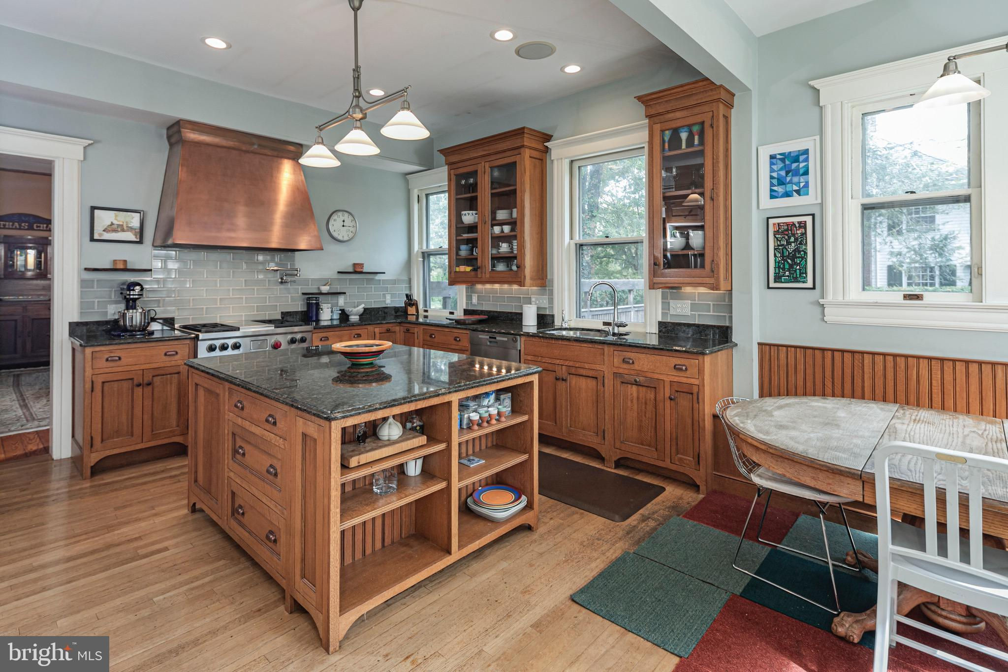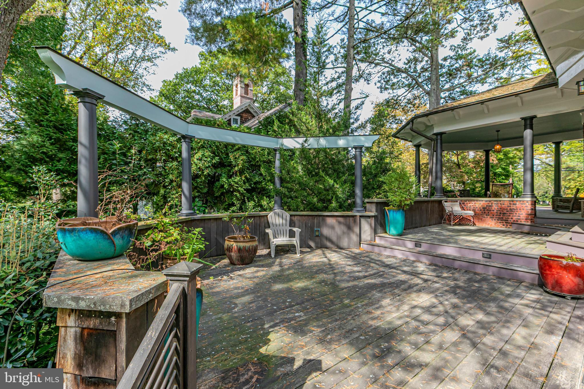 On one of Princeton’s most distinguished Western Section streets sits this rare brick turn-of-the-century Craftsman gem - a perfect melding of Edwardian style with modern versatility. Refined, yet so very comfortable and just the right size. With preserved original millwork, pocket doors, built-in cabinetry, high ceilings, leaded glass windows and wood floors throughout, every room displays the detailed craftsmanship of the era. Distinctive fireplaces in both the living and dining rooms create warm and inviting spaces for gatherings of family and friends. Two major renovations were conducted by the current owners. Interior renovations by architect Max Hayden, followed by exterior renovations by Andrew Sheldon, were all executed over time by builder Glen Doyle. The kitchen was thoughtfully opened, creating a sunny breakfast room and access to a rear interior staircase, patio, decks and lush backyard. Renovated from top-to-bottom using: custom cabinetry hand-built in Vermont, a copper range hood, Wolf professional range, grand center island and wonderful banquette, the kitchen fits this house perfectly. The useful butler’s pantry and powder room lie adjacent. A spacious entry foyer presents the main staircase which connects all three light and airy levels. Bedrooms span the two upper floors, along with two home offices and a sweet nostalgic sleeping porch. Five large bedrooms, three full baths and one half bath ensure comfort for everyone, while the basement offers additional spaces for utilities, storage and creative pursuits. A wonderful covered side porch, two tiered decks, a walled stone patio and the beautifully landscaped backyard frame the exterior, while a custom storybook shed, added by the current owners, awaits whatever you wish it to be: garden shed, studio, playhouse, etc. With its premiere Princeton in-town location and its close proximity to Princeton University, all downtown amenities and commuter trains, this property is certainly not to be missed!