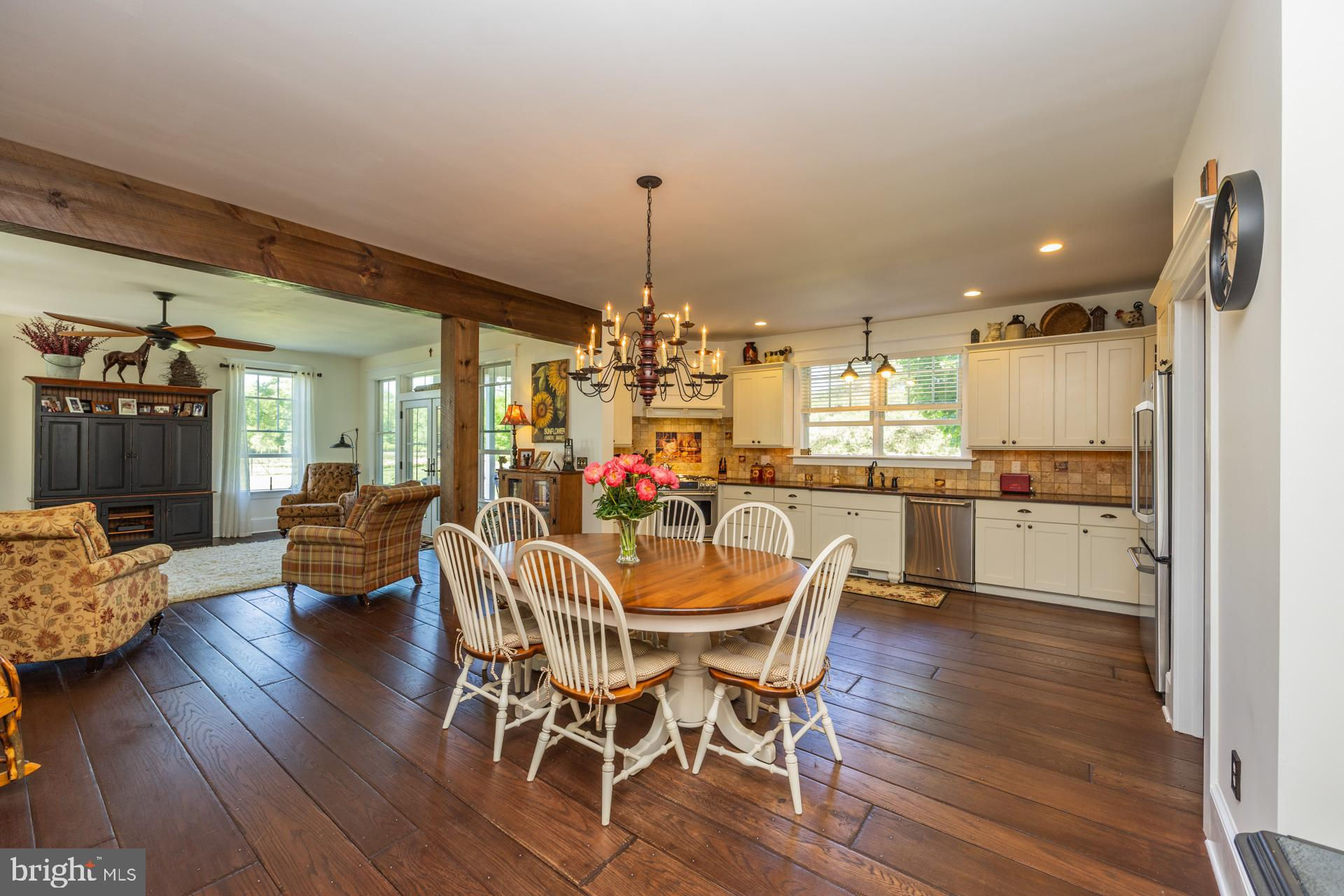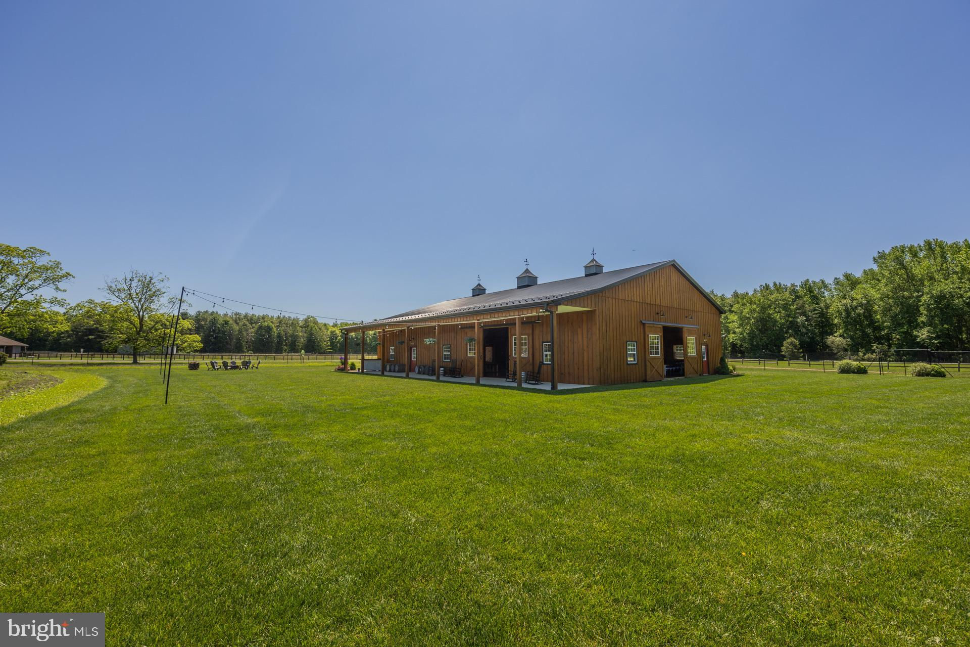 This 2011 custom home offers 3,142 square feet of finished living space and sits on 17.25 acres bordering Belleplain State Forest, providing a rare combination of privacy, acreage, and immediate access to outdoor recreation. The property offers approximately 1.5 miles proximity to the state forest’s extensive trail system, known for hiking, biking, nature paths, swimming and camping. It is also located approximately 15 minutes from the new Trout National Golf Course and within 20 minutes of Sea Isle City, Stone Harbor, and Avalon beaches, giving the property both rural seclusion and convenient access to coastal destinations. The main level features hardwood flooring and a functional, open layout. The kitchen flows into the dining space and living room, which includes a wood-burning fireplace, while a second gas fireplace in the formal living room adds additional comfort. A first-floor guest suite with a full bathroom and a wet bar provides flexible use for visitors. The main level also includes a laundry room equipped with a built-in dog-wash station and a convenient half bathroom. The second floor offers three bedrooms plus a nursery/office located directly off the primary bedroom and complete with its own closet. A full bathroom serves the upper-level bedrooms. Storage options are generous throughout the home. Significant property upgrades include a French drain and cement floor in the basement, 400-amp electrical service (200 amps to the house and 200 amps to the barn), a whole-house backup generator, and two HVAC systems—one serving the first floor (1 year old) and one serving the second floor. The detached garage was built in 2013 and provides additional vehicle or equipment storage. Outdoor features include a heated in-ground pool that is fully fenced, along with deer fencing surrounding the flower fields. The 26×60 barn, built in 2019, includes a concrete floor with a removable wood overlay that allows for easy conversion into stables or workshop space. The land is level, open, and highly adaptable for agricultural, equestrian, or hobby-farm use. The property offers a rare combination of acreage, forest adjacency, recreational access, and proximity to major Cape May County destinations. Approximately 15 minutes to the new Trout National Golf Course, 20 minutes to Sea Isle City, Stone Harbor, and Avalon, and 15 minutes to Woodbine Municipal Airport. Video tour available!