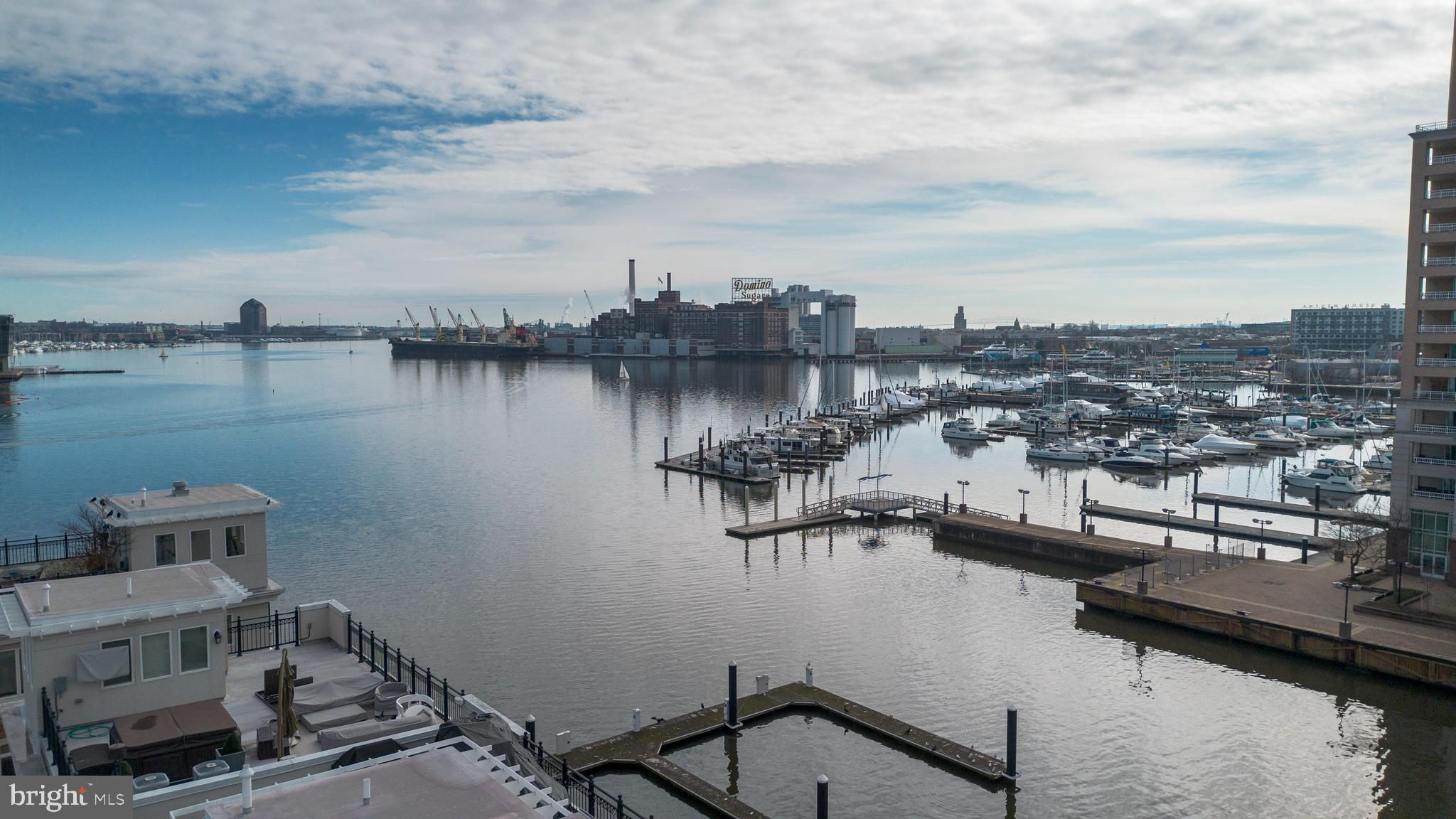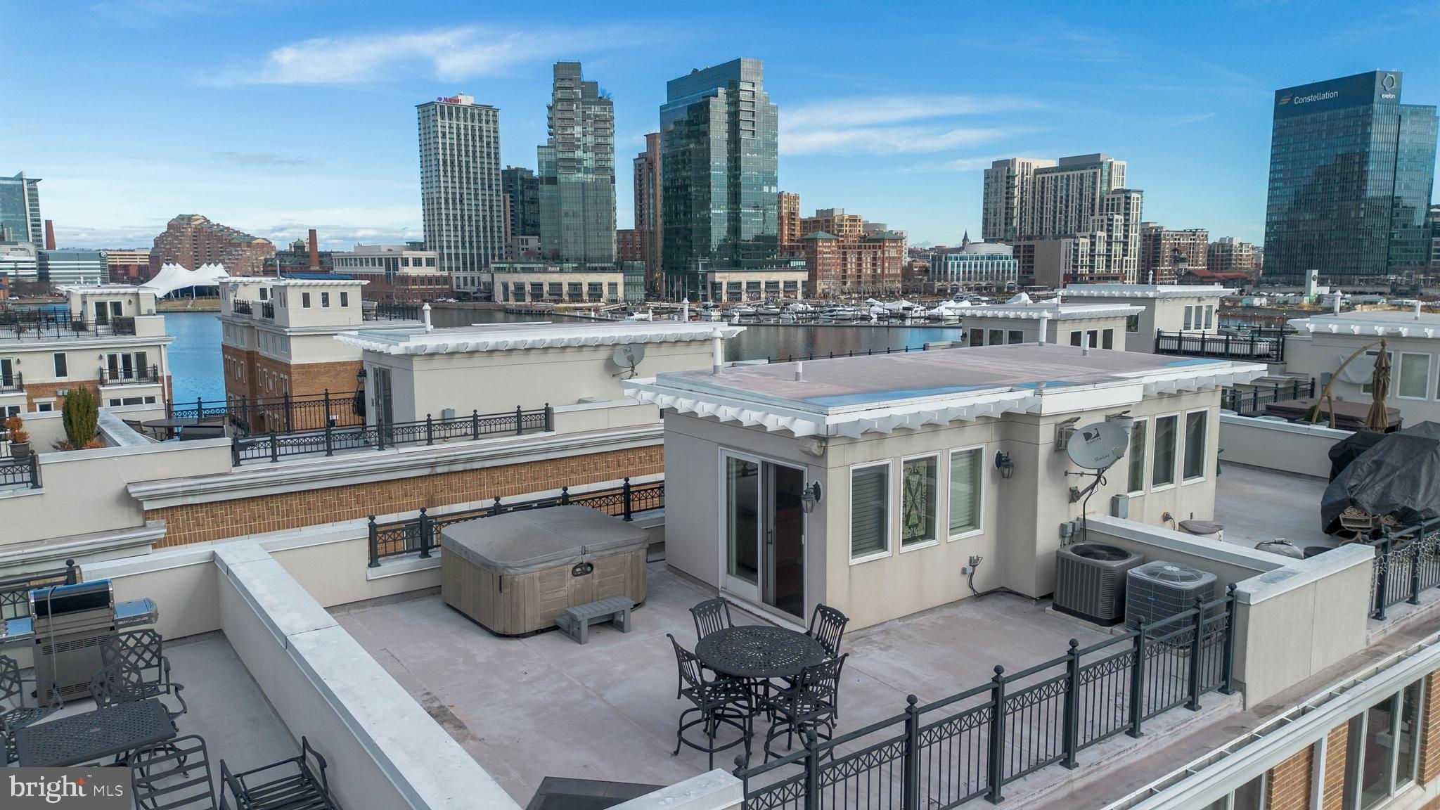 Welcome to 647 Ponte Villas, the epitome of luxury living on the prestigious and gated south pier of "The Pier Homes at Harborview," Baltimore. Soak in the sun, enjoy the views from multiple balconies, and love life with premium outdoor space on the expansive rooftop level. This private, former model home near the end of the pier showcases designer touches and unparalleled water views, epitomizing the pinnacle of waterfront city living. Inside, gorgeous hardwood floors and crown molding imbue elegance, while a 5-level glass commercial-style elevator connects each floor with sophistication. The gourmet kitchen is a chef's delight, featuring high-end appliances and custom details for cozy dinners and lavish entertaining that opens into a spacious dining and living room with water views from every angle. Blending luxury and comfort, the grand main bedroom suite occupies an entire level, featuring a sitting area, built-ins, a dual-sided fireplace, a spacious walk-in closet, and leads into a spa-like bathroom with a custom shower, separate bath, and double vanities. The experience peaks with a spacious rooftop level equipped with a wet bar and hot tub, offering panoramic city vistas—ideal for entertaining or tranquil nights. The fourth floor offers a family room, two bedrooms, and a bathroom, ensuring space for everyone. A 2-car garage and a fourth bedroom on the ground level complete this exceptional offering. Located on the waterfront promenade, it is a nice jog around the harbor or a short walk to your favorite restaurant. Built with impeccable craftsmanship and meticulous attention to detail, your waterfront hideaway has numerous community amenities, including a fitness center and an outdoor pool. 647 Ponte Villas isn't just a residence—it's a lifestyle of luxury, comfort, and unrivaled views, promising the best of Baltimore living. Watch the drone video virtual tour & download floorplans.