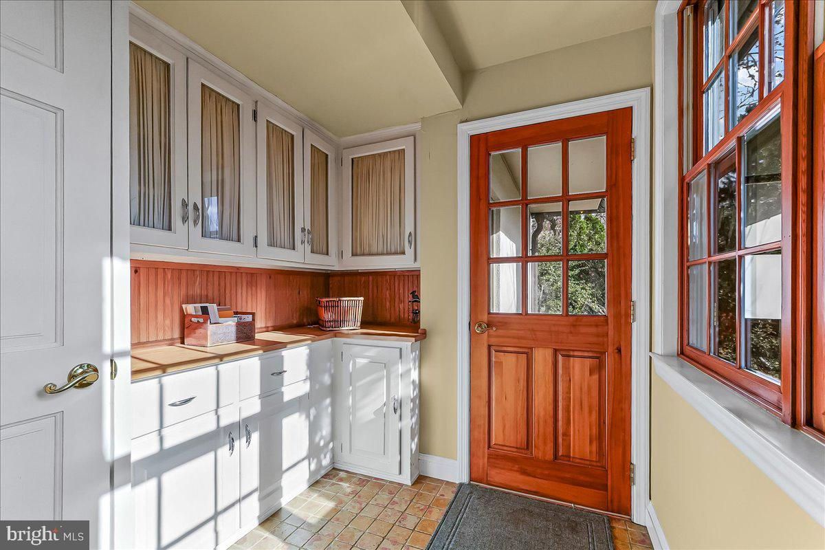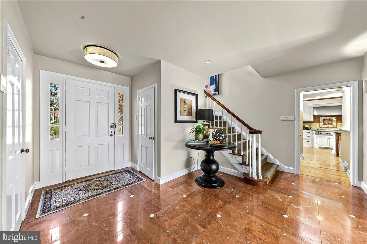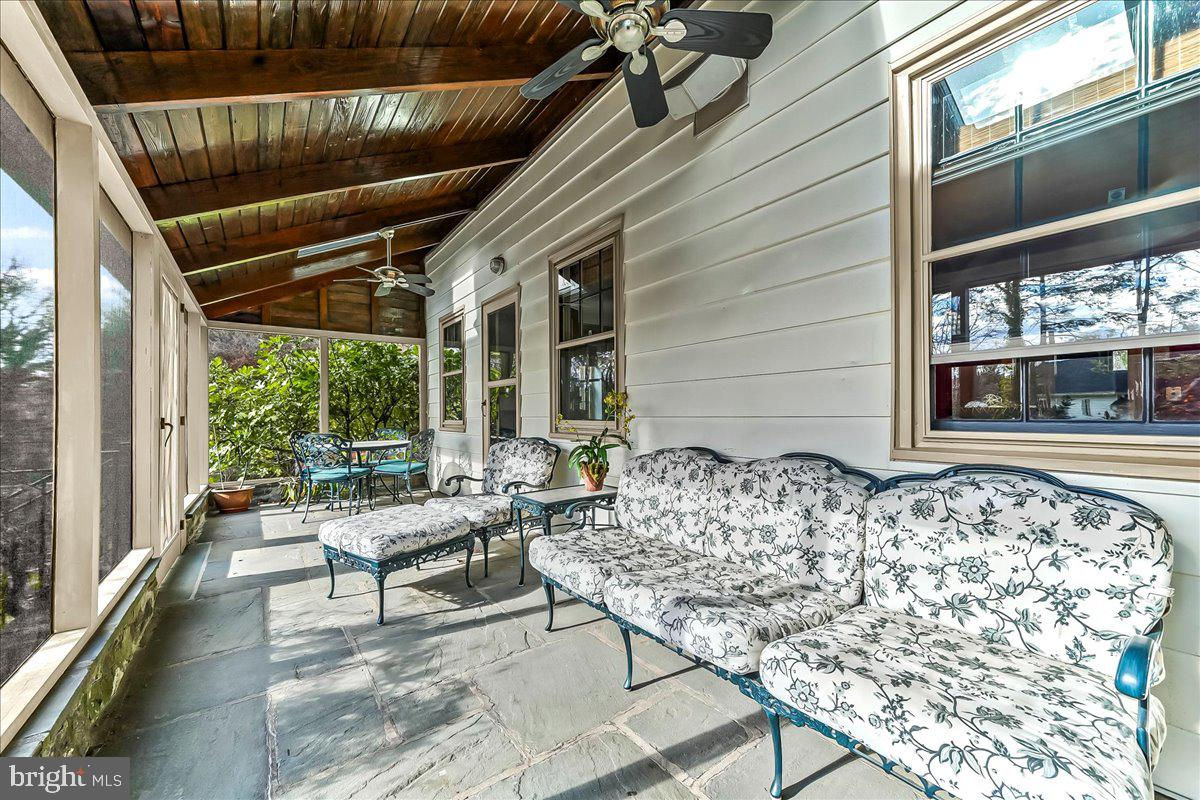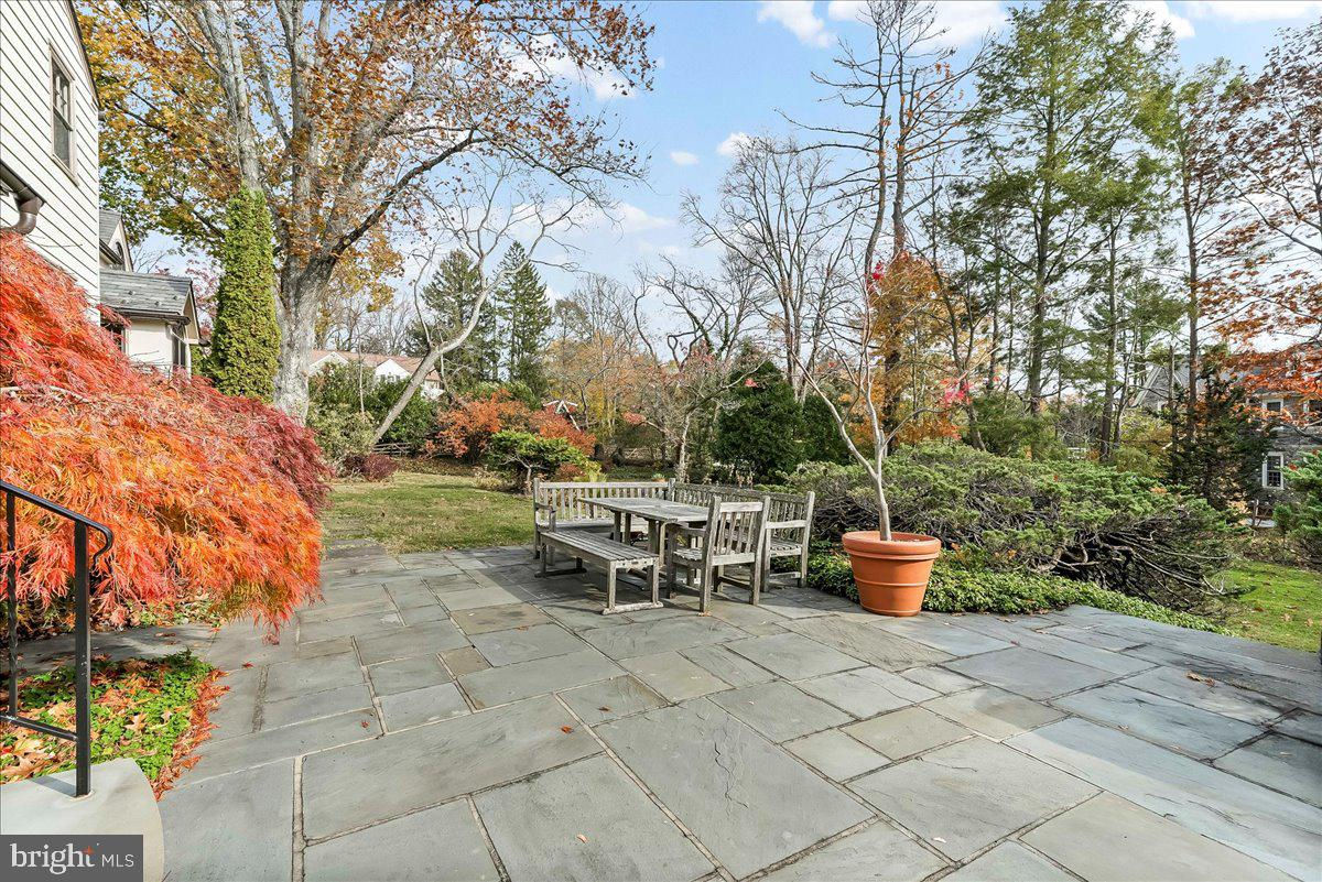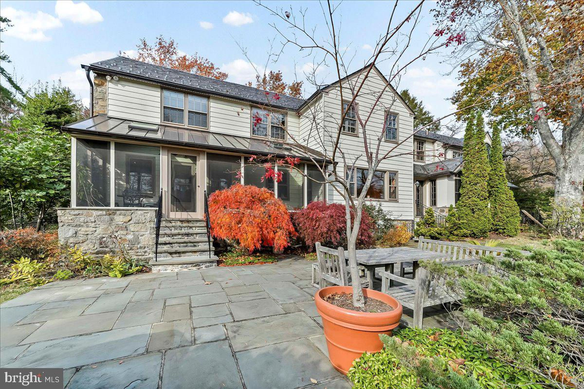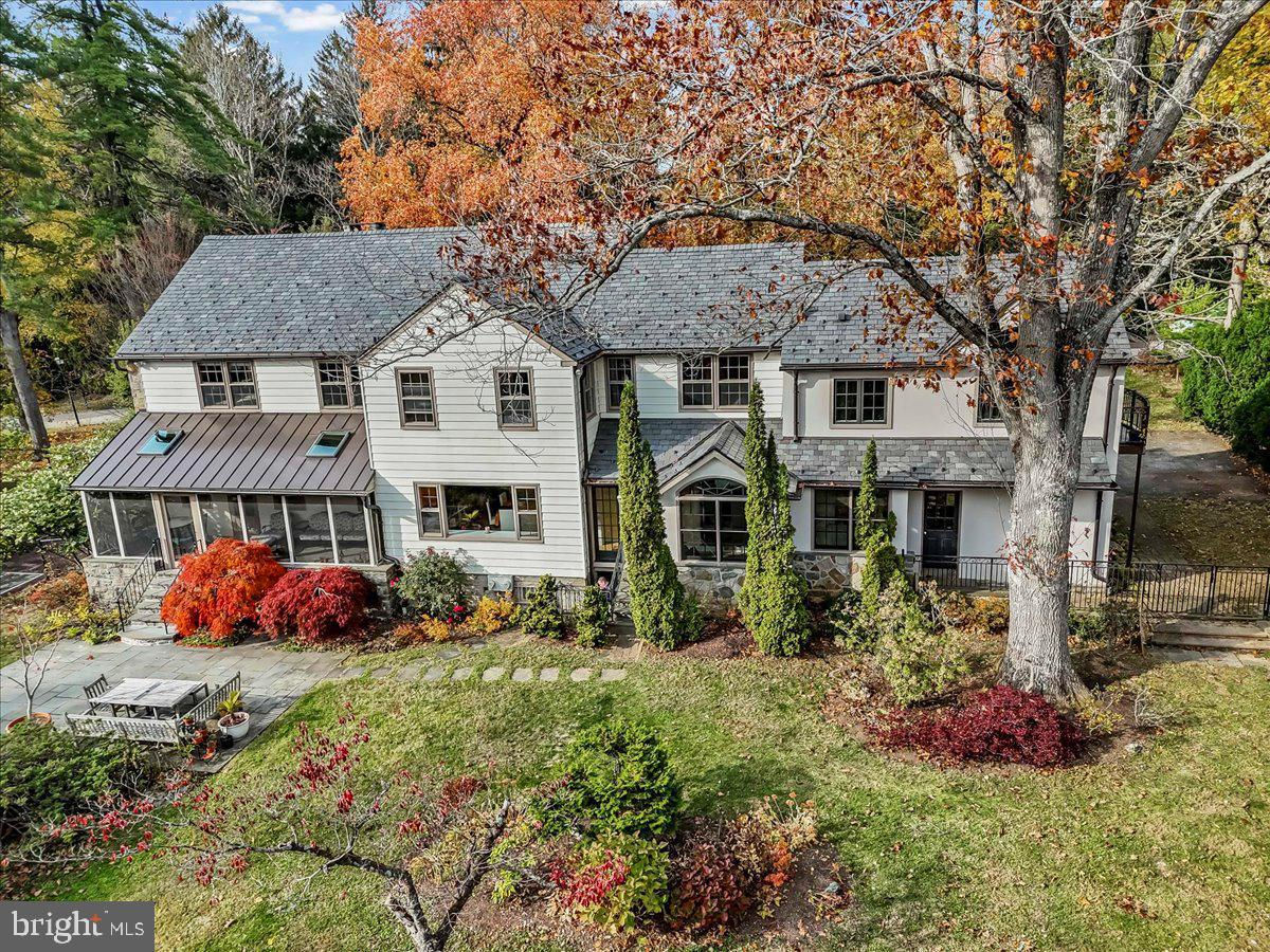 Surrounded by curated natural beauty and just moments from Dove Lake, this classic 1950s Main Line residence blends privacy, convenience, and timeless character in one of Gladwyne’s most desirable cul-de-sac settings. The stately stone exterior, enhanced by a new Vermont ¾-inch slate roof (2023), is set on nearly one acre of sweeping lawn and mature landscaping. 723 Dixon Lane offers 4,049 square feet across two levels with four to five bedrooms and four-and-a-half baths. A stone walkway leads to the front entry and welcoming foyer, flanked by a powder room and large coat closet. The home was thoughtfully designed to allow for a future full elevator here if desired. The main level features gracious, light-filled gathering spaces where old-world charm meets refined architectural detail. The dining room is framed by intricate mouldings and overlooks the serene rear grounds. All wallpaper and paint on this level are Farrow & Ball. A door from the dining room opens to the enclosed bluestone terrace with two skylights and a new metal roof (2023), offering an elevated vantage point over the heated pool (gas), gardens, and tennis court. Expansive windows throughout this level bring in exceptional natural light. A cozy den with built-ins provides an intimate retreat, while directly across the hall, a sophisticated prohibition-era bar showcases lighted glass shelving and dark wood cabinetry. The living room features hardwood floors, deep window sills, built-ins, and a paneled fireplace surround. A door from the living room opens directly onto the enclosed terrace, creating seamless indoor-outdoor flow. The custom eat-in kitchen sits just off the dining room and features Signature Cabinetry with soft-close drawers, paneled Sub-Zero refrigerator, six-burner Wolf stove with Best stainless-steel hood, double ovens, a large center island with undermount stainless sink, granite countertops, breakfast nook, pantry, built-in desk area, and rear mudroom. This back area also includes two rear staircases, offering excellent functionality and layout flexibility. Upstairs, the expansive primary suite occupies an entire side of the home. The sitting room can serve as a private office or be converted to a fifth bedroom. The spacious bedroom overlooks the grounds and includes extensive, lighted walk-in closets with custom designed built-ins with bench seating. The spa-like bath features two large vanities, a luxurious soaking tub, private water closet, and walk-in steam shower with bench seating. Farrow & Ball paint continues throughout this level. Bedroom three has a private hall bath, while bedroom four includes its own en-suite bath and walk-in closet. A newer addition above the garage offers a fifth bedroom suite with en-suite bathroom, LVP flooring, new Marvin windows and French doors, a separately zoned thermostat and heat pump (controls both heat and A/C), custom kitchenette with Pietra del Cardosa granite countertops, lounge area and a custom-made by Metalmorphose wrought-iron balcony overlooking the grounds. Perfect for guests, an au pair, or an in-law suite. All carpeted rooms have hardwood flooring beneath. The 1,000+ square-foot finished walk-out lower level includes radiant hydronic floors supplied by a newly installed Bradford-White hot water heater, paneled walls, a five-person sauna, full bathroom, wine cellar, dark room, recreation room, linen/china/storage room and mechanical room with NEW 5-stage inverter, variable speed Carrier A/C (2024) with 10-year warranty and Gas Heater (2019). Outdoor amenities include a heated pool with bluestone patio, a second terraced bluestone dining area, tennis court, shed, gardens, and expansive lawns bordered by mature landscaping, creating a truly picturesque setting. Enduring architecture and distinguished spaces, this remarkable home is ready to welcome its next owner.