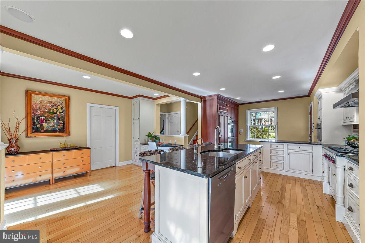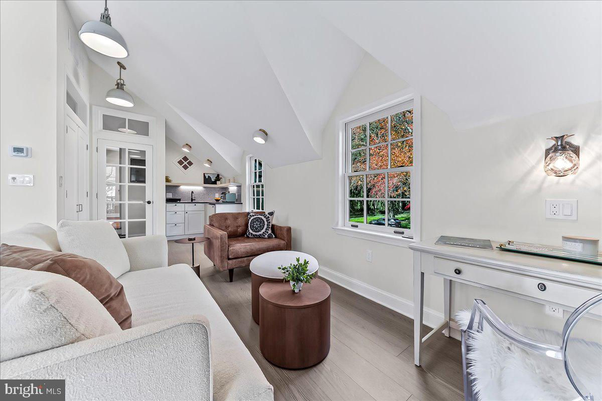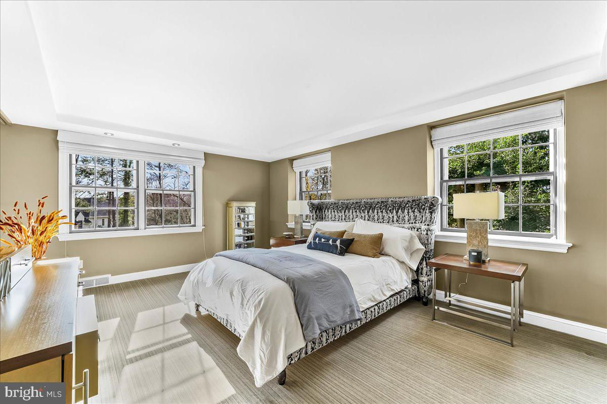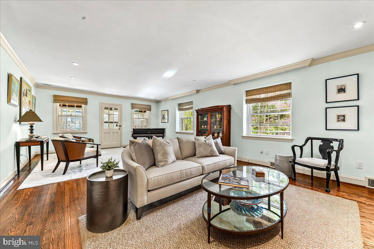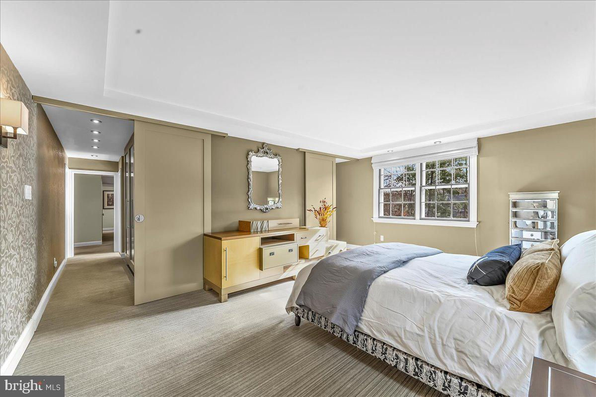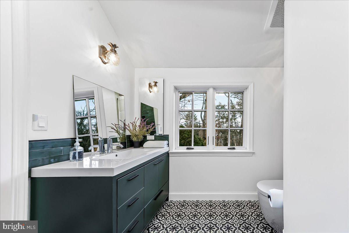 Surrounded by curated natural beauty and just moments from Dove Lake, this classic 1950s Main Line residence blends privacy, convenience, and timeless character in one of Gladwyne’s most desirable cul-de-sac settings. The stately stone exterior, enhanced by a new Vermont ¾-inch slate roof (2023), is set on nearly one acre of sweeping lawn and mature landscaping. 723 Dixon Lane offers 4,049 square feet across two levels with four to five bedrooms and four-and-a-half baths. A stone walkway leads to the front entry and welcoming foyer, flanked by a powder room and large coat closet. The home was thoughtfully designed to allow for a future full elevator here if desired. The main level features gracious, light-filled gathering spaces where old-world charm meets refined architectural detail. The dining room is framed by intricate mouldings and overlooks the serene rear grounds. All wallpaper and paint on this level are Farrow & Ball. A door from the dining room opens to the enclosed bluestone terrace with two skylights and a new metal roof (2023), offering an elevated vantage point over the heated pool (gas), gardens, and tennis court. Expansive windows throughout this level bring in exceptional natural light. A cozy den with built-ins provides an intimate retreat, while directly across the hall, a sophisticated prohibition-era bar showcases lighted glass shelving and dark wood cabinetry. The living room features hardwood floors, deep window sills, built-ins, and a paneled fireplace surround. A door from the living room opens directly onto the enclosed terrace, creating seamless indoor-outdoor flow. The custom eat-in kitchen sits just off the dining room and features Signature Cabinetry with soft-close drawers, paneled Sub-Zero refrigerator, six-burner Wolf stove with Best stainless-steel hood, double ovens, a large center island with undermount stainless sink, granite countertops, breakfast nook, pantry, built-in desk area, and rear mudroom. This back area also includes two rear staircases, offering excellent functionality and layout flexibility. Upstairs, the expansive primary suite occupies an entire side of the home. The sitting room can serve as a private office or be converted to a fifth bedroom. The spacious bedroom overlooks the grounds and includes extensive, lighted walk-in closets with custom designed built-ins with bench seating. The spa-like bath features two large vanities, a luxurious soaking tub, private water closet, and walk-in steam shower with bench seating. Farrow & Ball paint continues throughout this level. Bedroom three has a private hall bath, while bedroom four includes its own en-suite bath and walk-in closet. A newer addition above the garage offers a fifth bedroom suite with en-suite bathroom, LVP flooring, new Marvin windows and French doors, a separately zoned thermostat and heat pump (controls both heat and A/C), custom kitchenette with Pietra del Cardosa granite countertops, lounge area and a custom-made by Metalmorphose wrought-iron balcony overlooking the grounds. Perfect for guests, an au pair, or an in-law suite. All carpeted rooms have hardwood flooring beneath. The 1,000+ square-foot finished walk-out lower level includes radiant hydronic floors supplied by a newly installed Bradford-White hot water heater, paneled walls, a five-person sauna, full bathroom, wine cellar, dark room, recreation room, linen/china/storage room and mechanical room with NEW 5-stage inverter, variable speed Carrier A/C (2024) with 10-year warranty and Gas Heater (2019). Outdoor amenities include a heated pool with bluestone patio, a second terraced bluestone dining area, tennis court, shed, gardens, and expansive lawns bordered by mature landscaping, creating a truly picturesque setting. Enduring architecture and distinguished spaces, this remarkable home is ready to welcome its next owner.