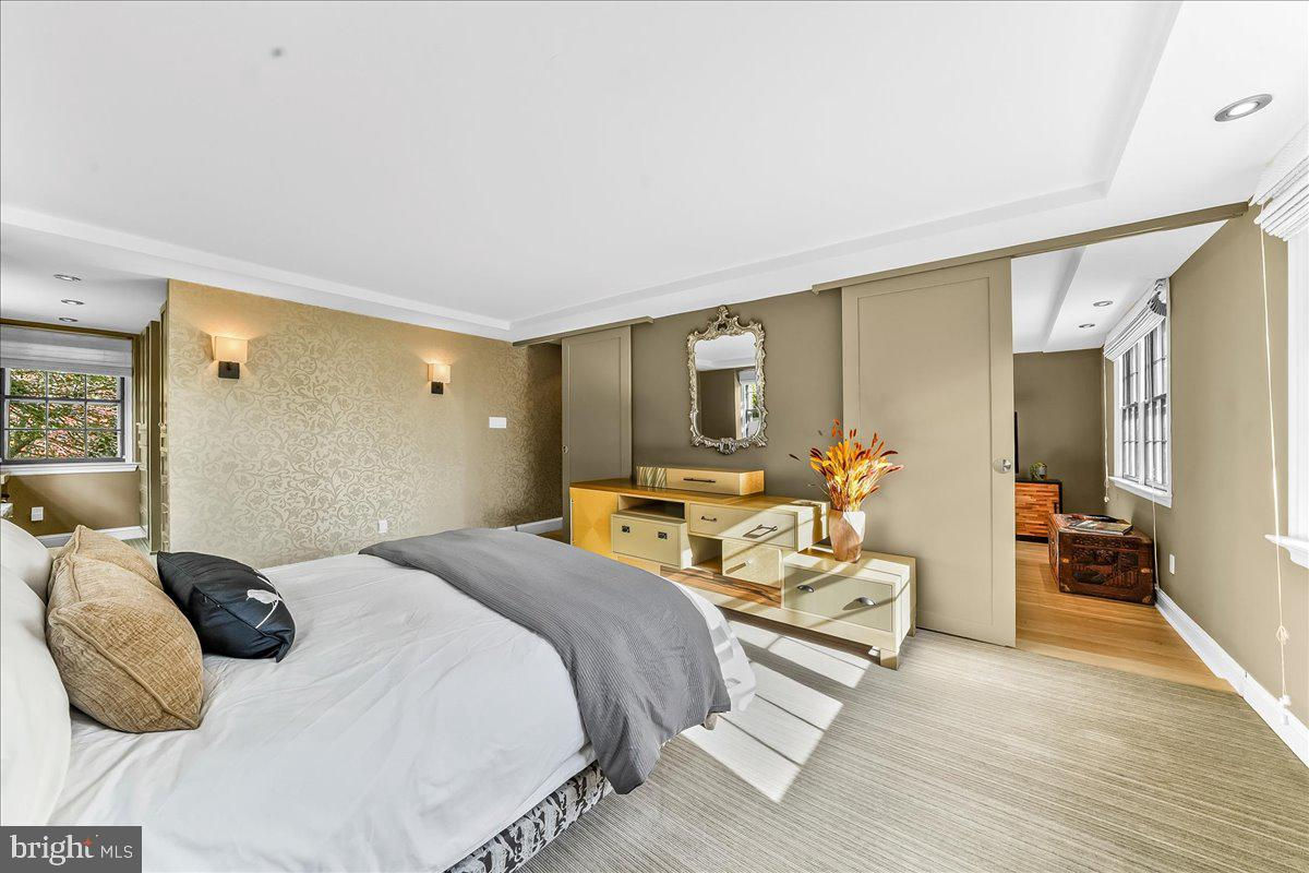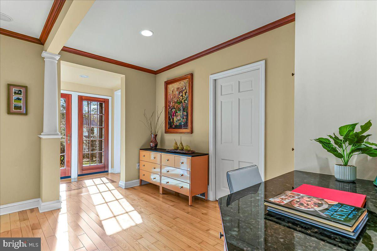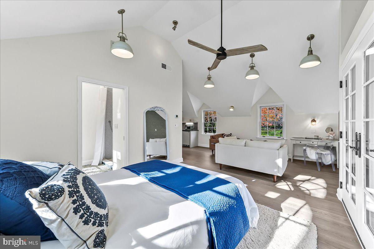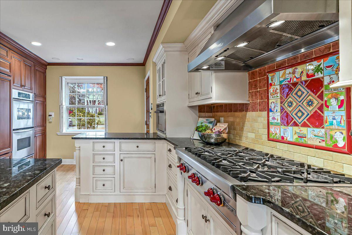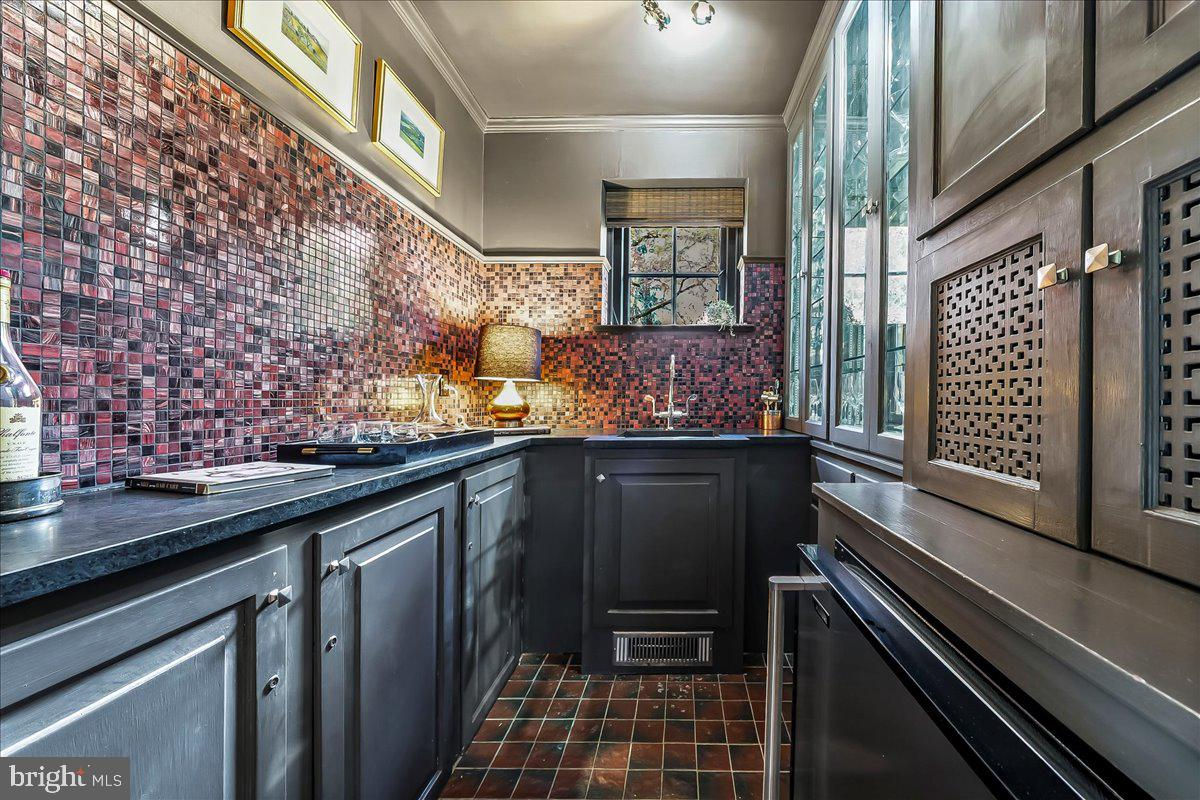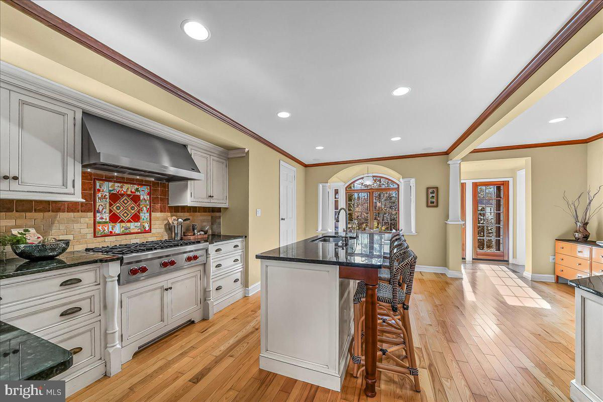 Surrounded by curated natural beauty and just moments from Dove Lake, this classic 1950s Main Line residence blends privacy, convenience, and timeless character in one of Gladwyne’s most desirable cul-de-sac settings. The stately stone exterior, enhanced by a new Vermont ¾-inch slate roof (2023), is set on nearly one acre of sweeping lawn and mature landscaping. 723 Dixon Lane offers 4,049 square feet across two levels with four to five bedrooms and four-and-a-half baths. A stone walkway leads to the front entry and welcoming foyer, flanked by a powder room and large coat closet. The home was thoughtfully designed to allow for a future full elevator here if desired. The main level features gracious, light-filled gathering spaces where old-world charm meets refined architectural detail. The dining room is framed by intricate mouldings and overlooks the serene rear grounds. All wallpaper and paint on this level are Farrow & Ball. A door from the dining room opens to the enclosed bluestone terrace with two skylights and a new metal roof (2023), offering an elevated vantage point over the heated pool (gas), gardens, and tennis court. Expansive windows throughout this level bring in exceptional natural light. A cozy den with built-ins provides an intimate retreat, while directly across the hall, a sophisticated prohibition-era bar showcases lighted glass shelving and dark wood cabinetry. The living room features hardwood floors, deep window sills, built-ins, and a paneled fireplace surround. A door from the living room opens directly onto the enclosed terrace, creating seamless indoor-outdoor flow. The custom eat-in kitchen sits just off the dining room and features Signature Cabinetry with soft-close drawers, paneled Sub-Zero refrigerator, six-burner Wolf stove with Best stainless-steel hood, double ovens, a large center island with undermount stainless sink, granite countertops, breakfast nook, pantry, built-in desk area, and rear mudroom. This back area also includes two rear staircases, offering excellent functionality and layout flexibility. Upstairs, the expansive primary suite occupies an entire side of the home. The sitting room can serve as a private office or be converted to a fifth bedroom. The spacious bedroom overlooks the grounds and includes extensive, lighted walk-in closets with custom designed built-ins with bench seating. The spa-like bath features two large vanities, a luxurious soaking tub, private water closet, and walk-in steam shower with bench seating. Farrow & Ball paint continues throughout this level. Bedroom three has a private hall bath, while bedroom four includes its own en-suite bath and walk-in closet. A newer addition above the garage offers a fifth bedroom suite with en-suite bathroom, LVP flooring, new Marvin windows and French doors, a separately zoned thermostat and heat pump (controls both heat and A/C), custom kitchenette with Pietra del Cardosa granite countertops, lounge area and a custom-made by Metalmorphose wrought-iron balcony overlooking the grounds. Perfect for guests, an au pair, or an in-law suite. All carpeted rooms have hardwood flooring beneath. The 1,000+ square-foot finished walk-out lower level includes radiant hydronic floors supplied by a newly installed Bradford-White hot water heater, paneled walls, a five-person sauna, full bathroom, wine cellar, dark room, recreation room, linen/china/storage room and mechanical room with NEW 5-stage inverter, variable speed Carrier A/C (2024) with 10-year warranty and Gas Heater (2019). Outdoor amenities include a heated pool with bluestone patio, a second terraced bluestone dining area, tennis court, shed, gardens, and expansive lawns bordered by mature landscaping, creating a truly picturesque setting. Enduring architecture and distinguished spaces, this remarkable home is ready to welcome its next owner.