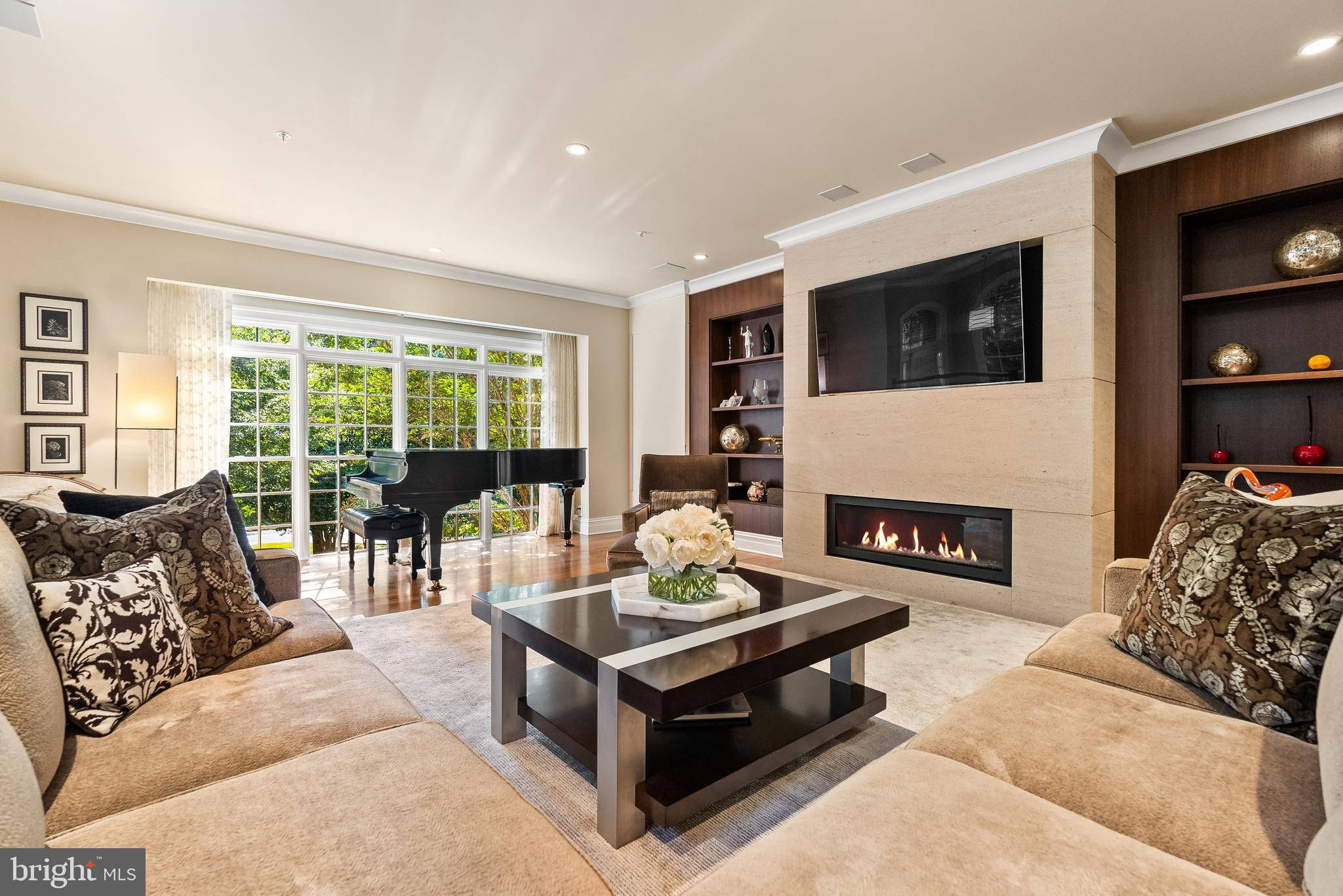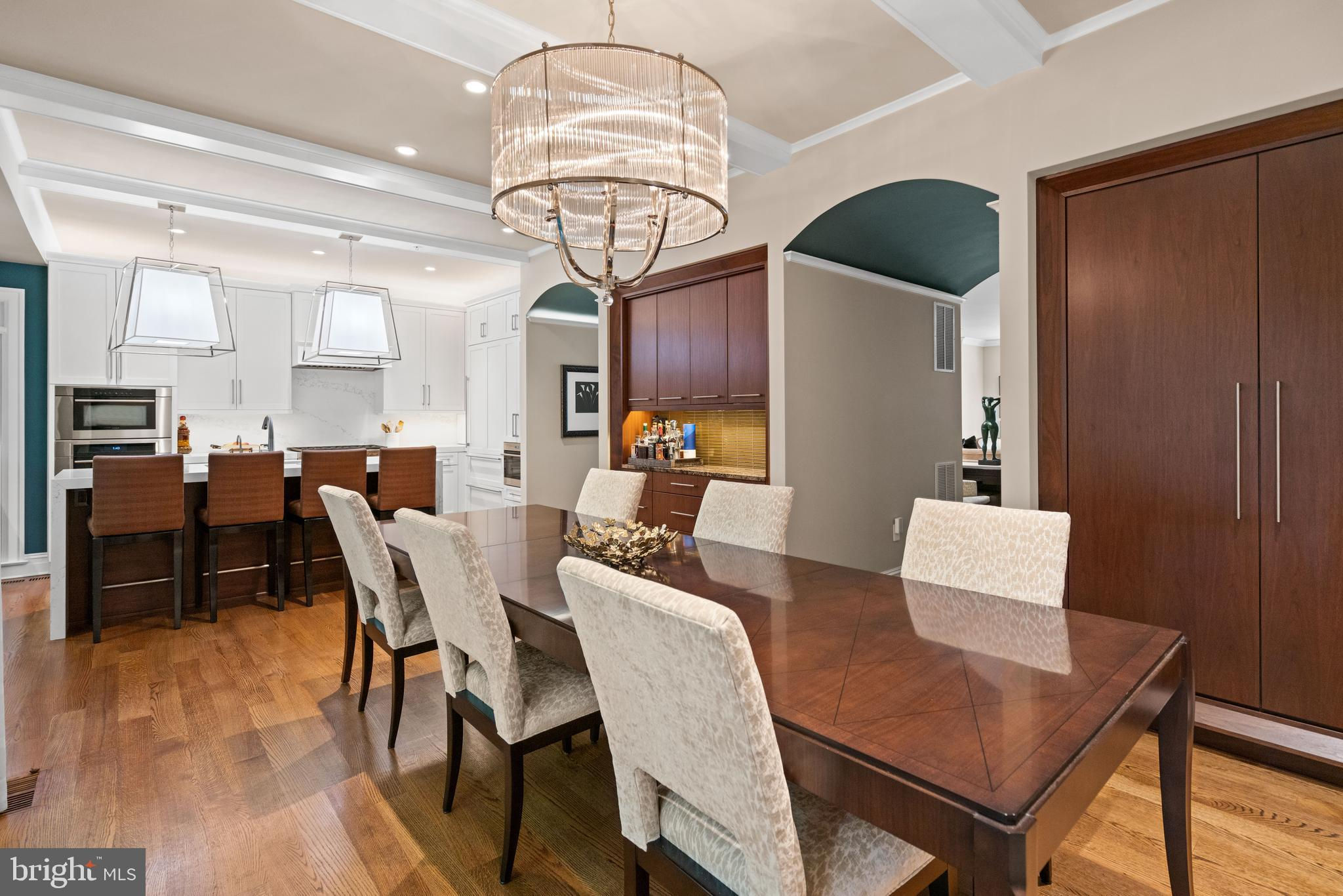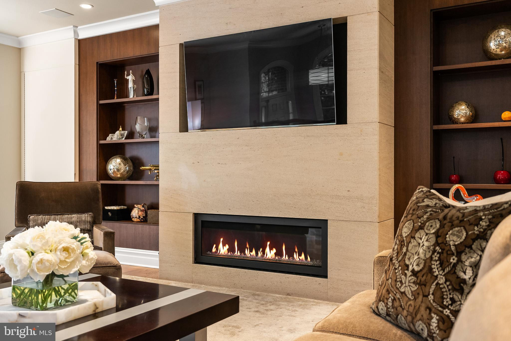Reimagined on all floors by award-winning Sroka Design, this Bannockburn Ridge end-unit offers contemporary sophistication and effortless flow across three light-filled levels all connected by a private, three-stop elevator. Walls of windows and an open glass staircase fill the home with natural light, highlighting 10’ ceilings, hardwood floors, and thoughtfully curated finishes. At the heart of the home, the luxury gourmet kitchen showcases a dramatic quartz waterfall island, Wolf range, Sub-Zero refrigeration, custom cabinetry, and designer lighting — complemented by a walnut bar with glass tile backsplash. Just steps away, the dining room offers abundant built-in storage, balancing form and function with ease. The expansive living room is anchored by a limestone gas fireplace with floor-to-ceiling walnut built-ins, creating a warm yet refined gathering space. Upstairs, the primary suite is a true retreat with its wall of windows, marble bath with dual sinks, and a boutique-style walk-in closet with center island. Two additional bedrooms and a full bath provide comfort and flexibility. The lower level extends the living space with a guest suite or office, a bath, laundry, and direct access to the two-car garage. Outside, the rear yard is finished with new stonework, in-ground irrigation, and a flexible exterior lighting plan, perfect for outdoor dining or entertaining while listening to the whole house Sonos system. Set within the Whitman School District and just minutes from downtown Bethesda, this residence offers easy access to downtown D.C. and I-495. With its refined design, private setting, and truly turnkey appeal, it is the perfect blend of luxury, location, and contemporary living.