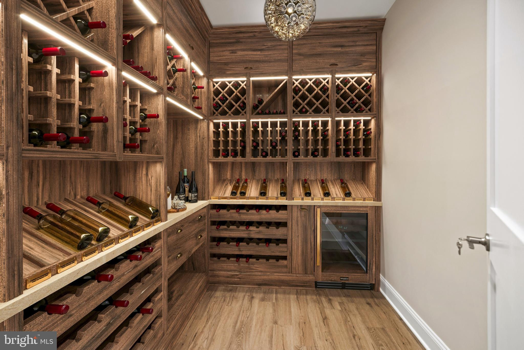 This exceptional custom-built estate in Burning Tree Valley is a true testament to refined living, offering an exquisite blend of elegance, comfort, and craftsmanship. This remarkable residence boasts an elegant natural stone and brick façade, an oversized TWO-car garage with 4 additional driveway spaces, and two luxurious primary suites—one on the main level and another on the upper level for ultimate convenience. With a total of 5 bedrooms, 5.5 bathrooms, and 6,491 square feet of impeccably designed interiors, every detail has been carefully curated. Step through the custom-designed Mahogany front door, and a breathtaking two-story foyer welcomes you with gleaming marble floors, and a crystal chandelier. The formal dining room showcases an exquisite crystal chandelier, adding a touch of refined elegance. A gourmet chef’s kitchen serves as the heart of the home, featuring a granite and marble island with bar seating, top-of-the-line Subzero-Wolf appliances, custom cabinetry, and a stylish butler’s pantry. The adjacent family room, anchored by a gas fireplace and a wall of windows, creates a warm and inviting atmosphere. A convenient powder room and a well-designed mudroom lead to the extra-large garage with abundant storage and functionality. The main-level primary suite features an elegant tray ceiling, and a spacious walk-in closet. The ensuite spa bath boasts custom tile work, premium finishes, a Jacuzzi soaking tub, and an oversized multi-head shower. The upper-level primary suite exudes elegance, complete with a private sitting room entry, soaring tray ceilings, and a dramatic floor-to-ceiling window overlooking the lush rear garden. The ensuite bathroom is a spa-like escape, featuring a 2-person Jacuzzi soaking tub, dual vanities, and a steam shower with custom tile and multiple shower heads. Two additional bedroom suites, each with walk-in closets and private baths, provide both comfort and style. A convenient bedroom-level laundry room is equipped with a large-capacity washer and dryer, a large sink, and ample storage shelves. The lower level, with its 9-foot ceilings and full-size windows, offers a vast recreation room with a wet bar, a fifth bedroom with a full bath, and a dedicated fitness studio. Additional amenities include a wine room, a second laundry room, and abundant storage space. This home showcases superior craftsmanship, from its 2x6 framing and soaring 10-foot ceilings on the main level to the custom millwork, solid core interior doors, and meticulous architectural detailing. Beyond its interiors, the professionally landscaped backyard offers an outdoor oasis. Terraced garden retaining walls, mature trees, and lush greenery frame the multi-level flagstone patio, complete with a built-in gas line. Perfectly located in one of the most sought-after neighborhoods in the DMV, this home provides seamless access to Whitman High School, Burning Tree Elementary, Pyle Middle School, Beech Tree Park, Downtown Bethesda, and major transportation routes. A rare blend of timeless elegance, masterful design, and modern luxury, this estate redefines sophisticated living.
