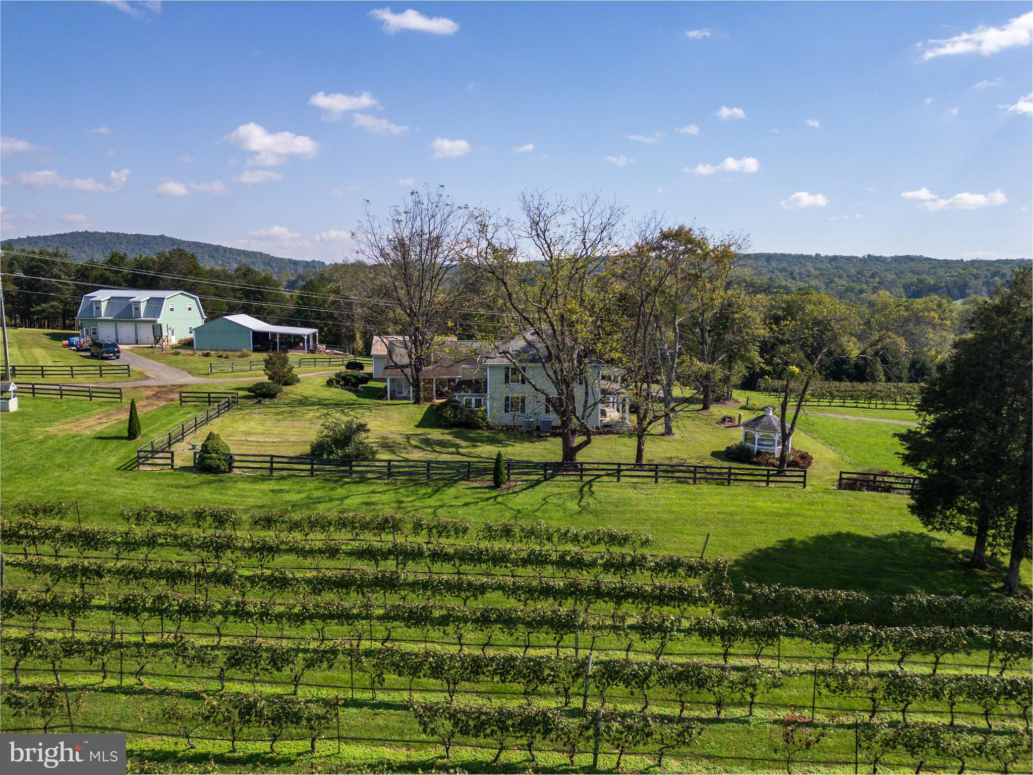 NEW PRICE! Income Producing! When entering this beautiful property, you enter a tranquil oasis, removed from the hustle and bustle of everyday life. An original 1912 Farmhouse is the cornerstone of this 58-acre property. Driving between the carefully manicured vineyards on either side of you —you start to get that excited feeling. This one could be the home and vineyard you’ve been imagining! Welcome to 2 Principals’ Vineyard, a fantastic property that combines a 1912 farmhouse with two additions, a working vineyard farm, and acreage that allows you to “get away”. The 3826-sf farmhouse on 58 acres of land incorporates a carriage house with 3 large bays for farm tractors and an apartment on top providing additional income. A large out barn also houses all the other working farm equipment.Inside, the lovely two-story home, the 1912 Farmhouse is the cornerstone upon which two additions have been built. The original farmhouse consists of an entry foyer and coat closet, parlor, dining room, half bath (powder room), pantry, and butler's pantry. Inside the coat closet, the floor contains a flush door opening leading to a basement which houses the furnace, hot water tank, and storage. The dining room is a showpiece with original red pine floors and the original gorgeous carved tin ceiling. Upstairs, there are three spacious bedrooms and two full bathrooms. The two additions add so much more to this lovely home. A comfortable and private master bedroom suite was added to the main floor, which contains a walk-in closet and a full bathroom with a jet tub. The added Great Room contains high vaulted ceilings with windows highlighting the vineyard, a gas-powered fireplace, and open open-plan kitchen. The charming kitchen has granite countertops, an undermount sink, a 5-burner gas stove (LG), a Bosch dishwasher, and a Bosch refrigerator.The functional laundry room and mudroom feature tile floors that also serve as an office. Both the washer and dryer are LG brand. To round out the main level, a nice-sized recreational room was added on with a wood-burning fireplace and a full wet bar complete with cabinetry, sink, and refrigerator. Outside, the estate features an income-producing 5 acres under vine, specifically Petit Manseng and Petit Verdot. The vineyard is managed by a local winery and the grapes are sold to neighboring wineries. The owners have a nice vegetable garden and fruit-bearing trees including pears and peaches. The beautifully landscaped grounds offer numerous places to enjoy the outdoors. A functional gazebo with new screening offers opportunities to relax and enjoy the views. There is an ornately carved functional water fountain with gardens surrounding it, adding more beauty. Next to the home, there is a two-bay garage used for cars and other storage.2 Principals’ Vineyard is conveniently located near Warrenton, Dulles International Airport, with shopping centers, wineries, breweries, and restaurants.